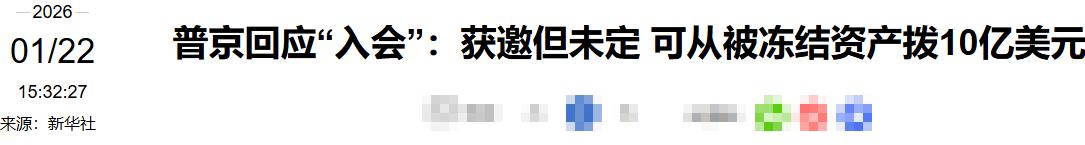 普京:我们决定加入,美国成功拉拢俄罗斯。 1月22日,俄罗斯总统普京表示:“我们将加入由美国倡导的和平委员会,并将用在美冻结的俄罗斯资产中,向美国支付10亿美元会费。” 特朗普主导的“和平委员会”,这个名义上负责监督加沙重建、协调地区冲突的平台,骨子里是想绕开联合国,打造一个以美国为核心的国际治理小圈子。 长期以来,联合国在国际冲突调解、全球治理中扮演核心角色,但美国多次因自身利益诉求与联合国决议相悖,逐渐倾向于搭建专属平台。 拉拢盟友及相关国家,将自身意志转化为“圈子内”的共识,从而削弱联合国的话语权,巩固自身在全球事务中的主导地位。此次拉拢俄罗斯加入,更是想借助俄罗斯在中东地区的影响力,为这个委员会的合法性背书。 普京的表态并非一时冲动,而是经过审慎考量的结果。据克里姆林宫网站1月21日发布的消息,普京此前已收到特朗普政府的正式邀请,并责成俄外交部深入研究相关文件,同时与俄方战略伙伴展开磋商,之后才做出回应。 他在视频连线召开俄联邦安全会议常务委员会议时明确表示,俄方过去和现在都支持任何旨在加强国际稳定的努力,这也是俄方考虑加入该委员会的重要前提。 关于10亿美元会费的来源,也暗藏诸多细节。这笔资金将从俄罗斯在美被冻结的资产中拨付,而这部分资产的处置一直是俄美双方博弈的焦点。 普京同时提及,除了用于支付委员会会费的10亿美元,剩余在美被冻结的俄罗斯资产,还计划在俄罗斯与乌克兰签署和平条约后,用于重建在军事行动中遭受破坏的地区。 目前俄方正与美方代表就此种资产使用方式的可行性展开讨论,试图让被冻结资产发挥更多符合俄方利益的作用,俄方对加入委员会的核心诉求,始终围绕中东地区的实际问题展开。 普京强调,委员会提出的解决方案必须依据联合国相关决议,积极推动巴以冲突的长期解决,同时不能忽视巴勒斯坦人民的不可剥夺的需求和愿望。 这其中既包括加沙地带的重建工作,也涵盖医疗卫生、供水系统修复、粮食供应保障等关键民生议题。 俄罗斯与巴勒斯坦人民有着特殊的历史关系,在中东地区拥有深厚的利益关联,这也是其愿意参与该委员会的重要动因。 此次俄美合作也让中东地区的地缘格局变得更加复杂。此前,俄罗斯在中东地区与伊朗、叙利亚等国保持密切合作,而美国则是以色列的核心盟友,双方在中东的利益诉求多次冲突。 如今俄罗斯加入美国主导的委员会,并非意味着双方彻底摒弃分歧,而是在特定议题上的有限合作。 双方都希望借助对方的力量实现自身目标,美国需要俄罗斯的影响力巩固委员会地位,俄罗斯则想通过参与重建进程,扩大在中东的话语权,同时为被冻结资产的处置争取更多主动权。 国际社会对这一合作的反应也各不相同。部分国家认为,俄美合作有助于推动加沙重建和巴以冲突缓和,符合地区和平稳定的需求,也有国家担忧,美国会借助该委员会裹挟俄罗斯,进一步推行单边主义,破坏现有国际治理体系。 联合国方面尚未对此作出明确表态,但可以肯定的是,若该委员会的行动与联合国决议相悖,必然会遭遇更多国际社会的质疑。 事实上,俄美之间的这种有限合作并非首次。在反恐、核不扩散等议题上,双方曾有过阶段性合作,但始终未能突破核心利益分歧。 此次在和平委员会议题上的牵手,更多是基于短期利益的妥协与平衡,能否持续推进,还取决于双方在中东政策、资产处置等关键问题上能否达成更多共识。 说到底,国际政治从不是简单的妥协或对抗,普京这一手既没损失实际利益,又在舆论和战略上占尽先机。 如今特朗普面临的选择,早已超越了10亿美元的范畴,而是关乎西方制裁的合法性与美欧同盟的稳定性。 毕竟,地缘政治中的合作从来都是利益优先,俄美之间的战略博弈,并不会因为这一次的合作就彻底消散。