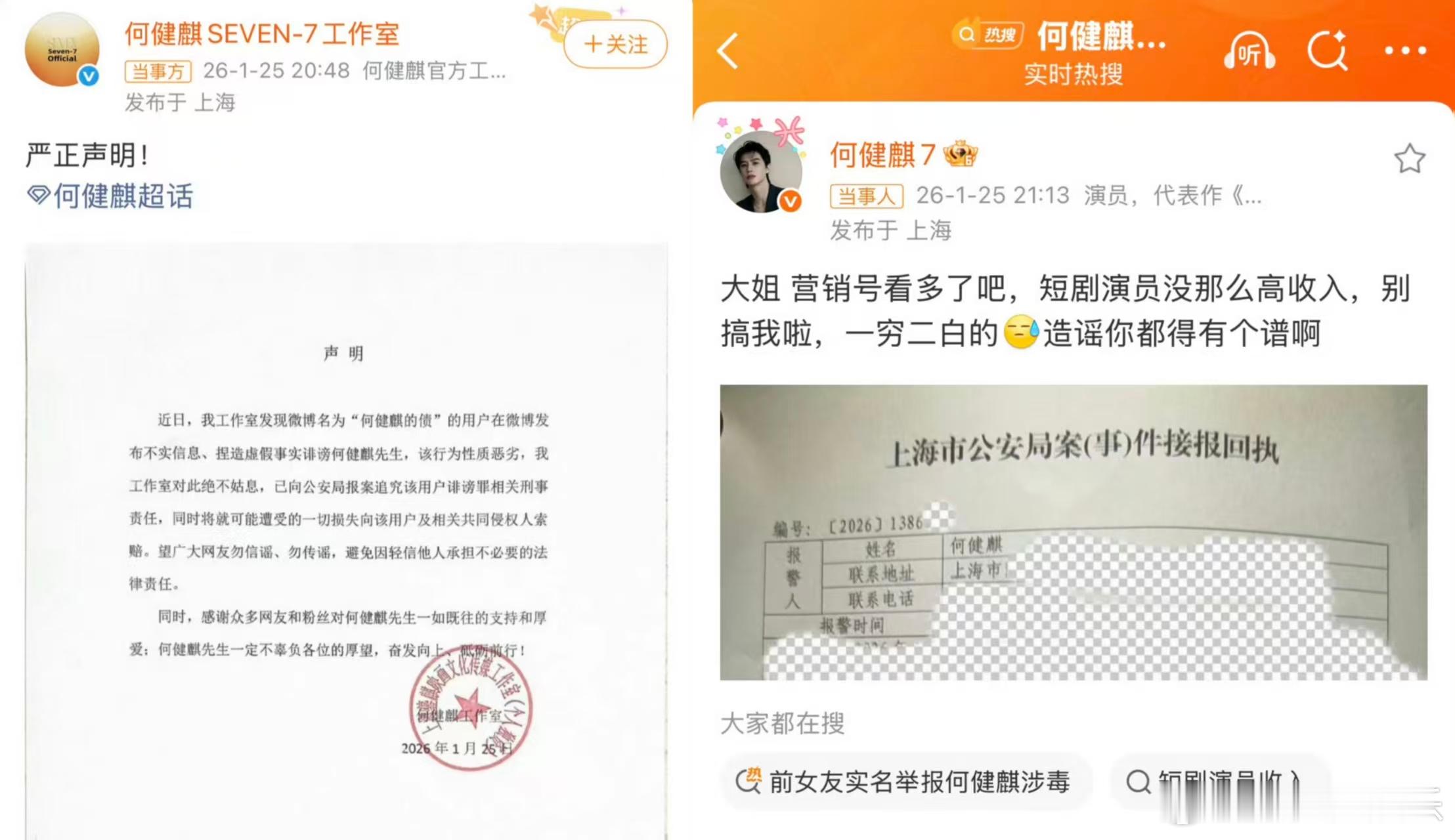 过去的一周左右,短剧演员、漫剧及长剧翻拍均有新动作。既有短剧演员深陷涉毒风波,也有经典长剧即将翻拍掀起了网友热议......凤凰网娱乐梳理本周短剧行业核心动态,总览如下:一、知名短剧演员何健麒被举报涉毒后续25日晚,一名自称是短剧演员何健麒前女友的网友实名举报何健麒涉毒。她表示曾多次亲眼目睹,去年十月何还被警方带走调查,并且可以查到办案记录。随后,何健麒工作室发布严正声明否认,何健麒本人也发文表示:“大姐 营销号看看多了吧,短剧演员没那么高收入。”“造谣你都得有个谱啊”。二、漫剧维权事件升级:稻谷行运人员发生肢体冲突,已报警近期围绕行运文化和稻谷文化之间的剧本稿酬纠纷有了最新进展。双方原计划于1月22日下午在稻谷文化办公室沟通此事,但后来发生了肢体冲突,随后报警,目前事件进入警方处置阶段。行运文化控诉5部上榜剧本上线后未拿到尾款等巨额损失;稻谷文化回应称已支付15万元,未结款项需完成上线内容与剧本一致性核对等原因。双方各执一词。三、经典谍战剧《伪装者》即将翻拍短剧版本近日,有知情人士透露电视剧《伪装者》即将翻拍短剧版,目前剧组正在筹备中。原著作者以及编剧张勇求证确认了此事,表示自己的确已售出版权,该剧即将翻拍短剧版本。据悉,电视剧《伪装者》多年来一直高居国产谍战剧榜单前列,是观众心中国产谍战剧的经典代表作之一。凤凰网娱乐直击短剧动态