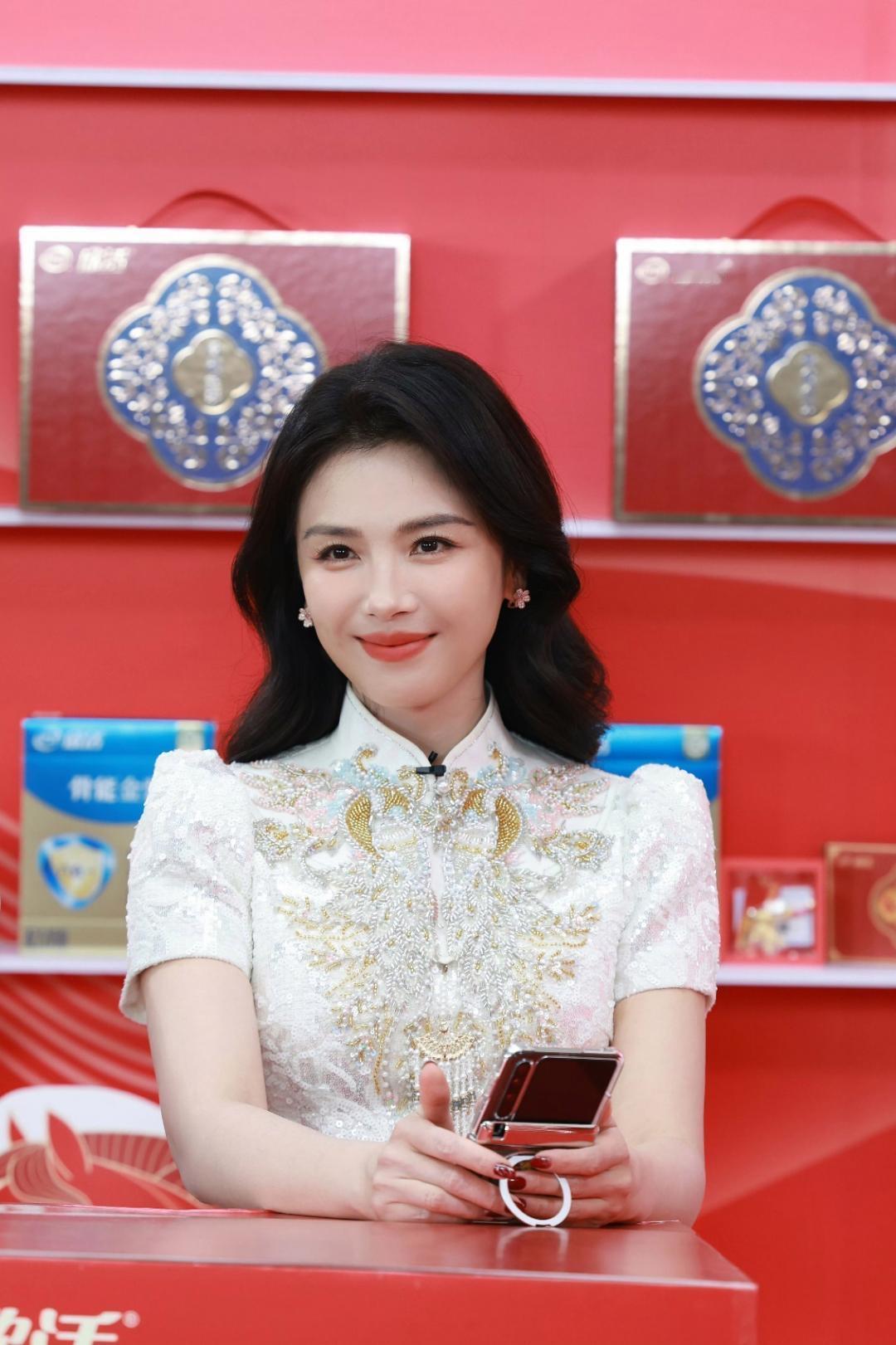 刘涛|一袭白旗袍,邂逅东方年味 在满是新春氛围的红墙前,刘涛一袭白色旗袍亮相,用雅致韵味点亮了整个现场。 旗袍上的金色刺绣纹样精致繁复,点缀着珠钻与亮片,在灯光下熠熠生辉。立领与短袖的经典版型,既保留了中式服饰的温婉,又融入了现代时装的精致感。蓬松的波浪卷发搭配小巧耳饰,让她既有成熟女性的优雅,又带着灵动的亲和力。