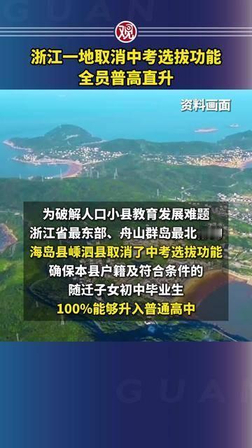 取消中考选拔功能,全班直升普高,海岛教育的温柔革新:让每个少年都有向上的阶梯 在浙江舟山嵊泗的蔚蓝海岸边,一场教育改革正悄然传递着暖意。2025年秋季起,这里取消中考选拔门槛,普高实行全员直升,266名填报志愿的初三学子尽数圆梦,县域普高就读率达81%。 最动人的蜕变,藏在随迁子女的笑容里——他们的普高覆盖率从43%跃升至100%,户籍不再是成长路上的壁垒,教育公平的阳光照亮了每一个家庭。这场改革褪去“唯分数论”的功利,以“学业水平考试+过程性表现”双轨评价,让教育回归“为成长而教”的本质。 这不是简单的升学扩容,而是海岛对少年成长的温柔守护。分层分类育人的探索,让不同特质的孩子都能找到适配的赛道。尽管未来仍需时间检验,但这份淡化竞争、深耕育人的初心,已为教育均衡化写下最温情的注脚,让每个海岛少年都能踏着星光,奔赴属于自己的远方。 一地取消中考选拔功能 全员直升普高