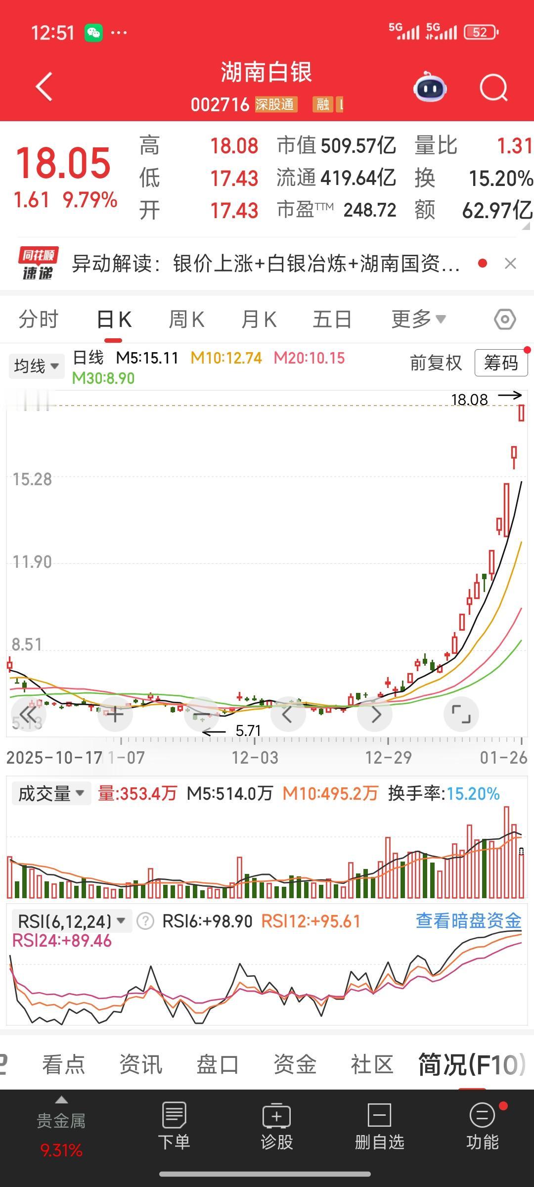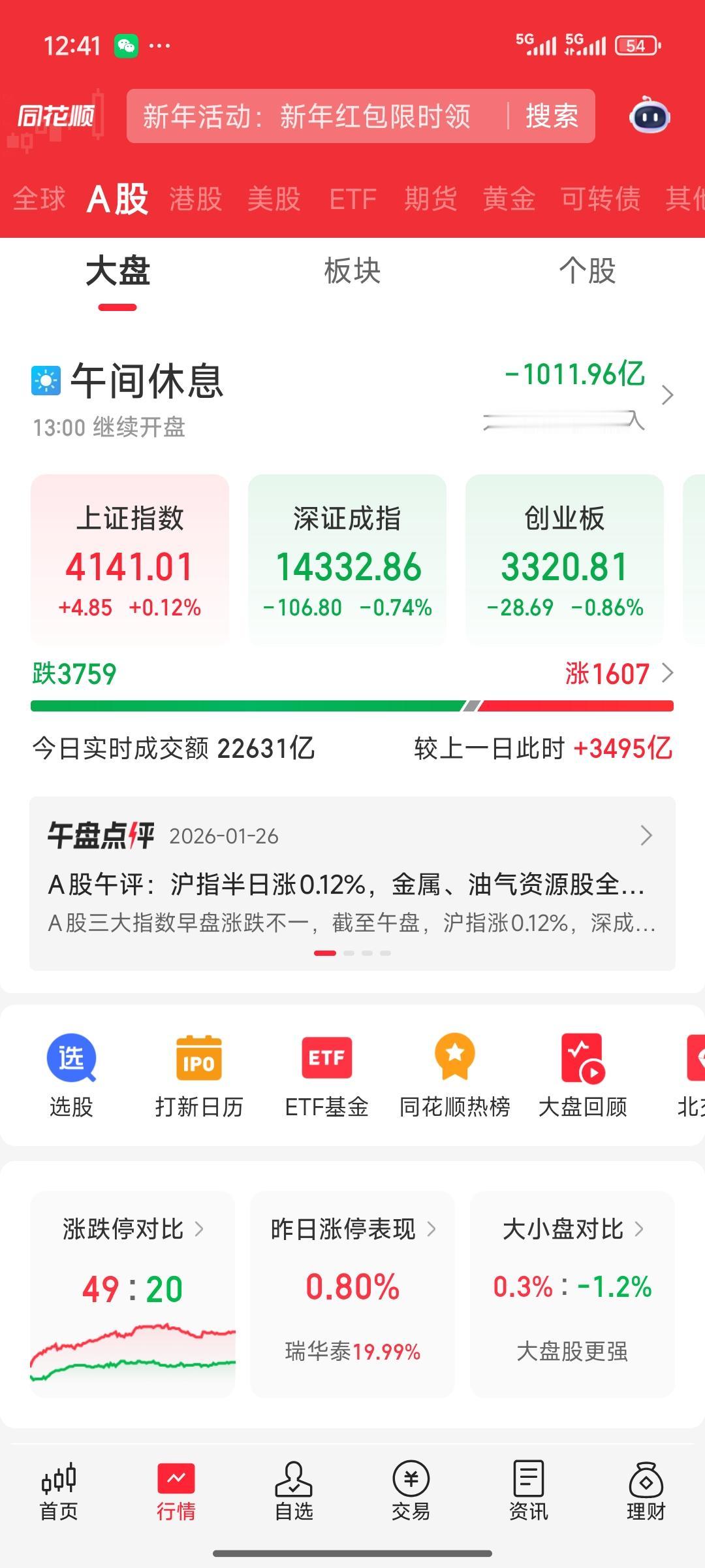 今天上午的行情,用一个“诡”字形容再合适不过。大盘,尤其是上证指数稳若磐石,不过在拉升时,能察觉到 eTf501T3000 这一神秘资金刻意打压的迹象。 同时,周末被吹爆的商业航天、航空航天、航天光伏、航天智算等板块,今日仿佛事先商量好一般,一路低开低走且放量下跌。还有近期热门的 AI 板块,亦是如此。这或许与周末发布的几道禁令有关,尤其是两只股票特停,明显压制了部分资金的操作情绪,我想只能如此解释。 对于目前持有的股票,不妨先观察几日。我认为这种压制并非自然释放,除非后续出台更严厉的措施,否则经过 2 - 3 天的调整,我预计周三行情有望恢复。 贵金属板块,尤其是黄金和白银,近乎涨停,市场已陷入疯狂,行情达到高潮,我觉得还是远离为妙。 随时可能面临剧烈的调整下跌。就跟前期的商业航空航天下跌一样。上证指数 ETF指数 ETF市场分析 指数etf基金 etf指数 etf板块 指数型etf
