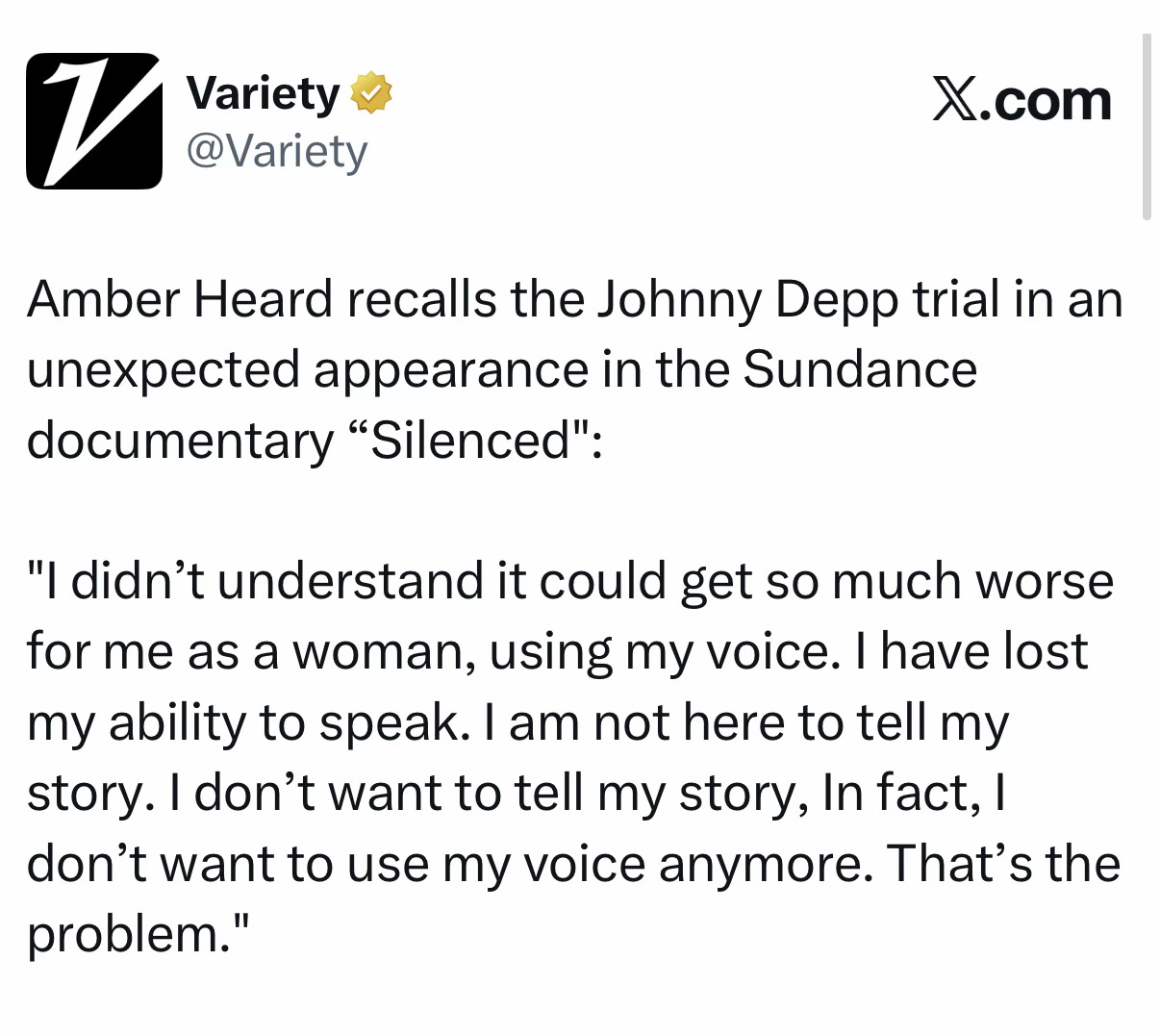 据外媒,艾梅柏·希尔德在2026圣丹斯电影节纪录片《Silenced》中出镜,忆德普诽谤案。“我从未想过,作为一名发声的女性,我的处境竟会变得如此艰难。我已失去了表达的能力。我站在这里,不是为了讲述我的故事——我甚至不愿再讲述自己的故事。事实上,我已不愿再发出任何声音。而这,正是问题所在。”该片深入探讨了她遭遇的一系列备受瞩目的法律诉讼,揭示了诽谤诉讼如何给敢于发声的女性造成二次创伤,甚至导致她们破产。她的英国律师詹妮弗·罗宾逊是这部纪录片的主创。