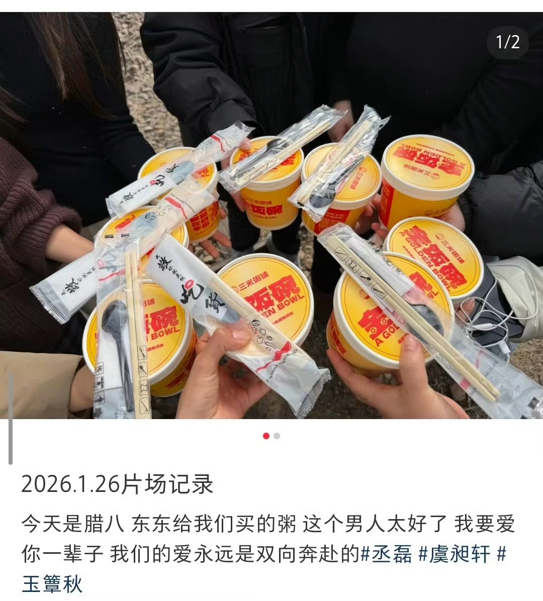 丞磊请粉丝吃腊八粥 丞磊腊八节空降超话营业,还请粉丝喝腊八粥,好宠粉啊
