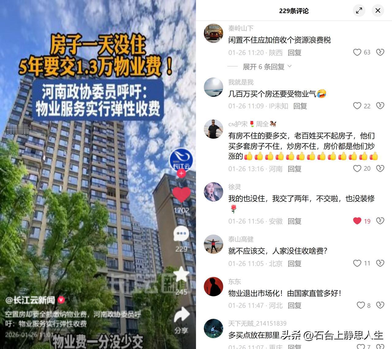 空置5年一天没住,竟要全额交1.3万物业费? 河南业主李女士的遭遇引发热议,但按当地现行条例,这笔收费确实合规,河南至今没明确空置房的物业费减免条款。 这事儿既非物业强买强卖,也非业主耍无赖,归根结底是规则滞后撞上现实需求的典型博弈。 你看,山东、湖南等地早就有了空置6个月以上按70%收费的规定,河南相关代表也呼吁推行弹性收费,可新规落地还在走流程。 大家吵成两派:一边共情业主没享服务凭啥全交,一边怒怼囤房浪费资源该加倍收。说白了,争论的焦点早已超出那几万块物业费,更多是对住房资源分配失衡的焦虑,以及对规则跟不上生活变化的无奈。 什么时候,我们的规则能跑在问题前面?