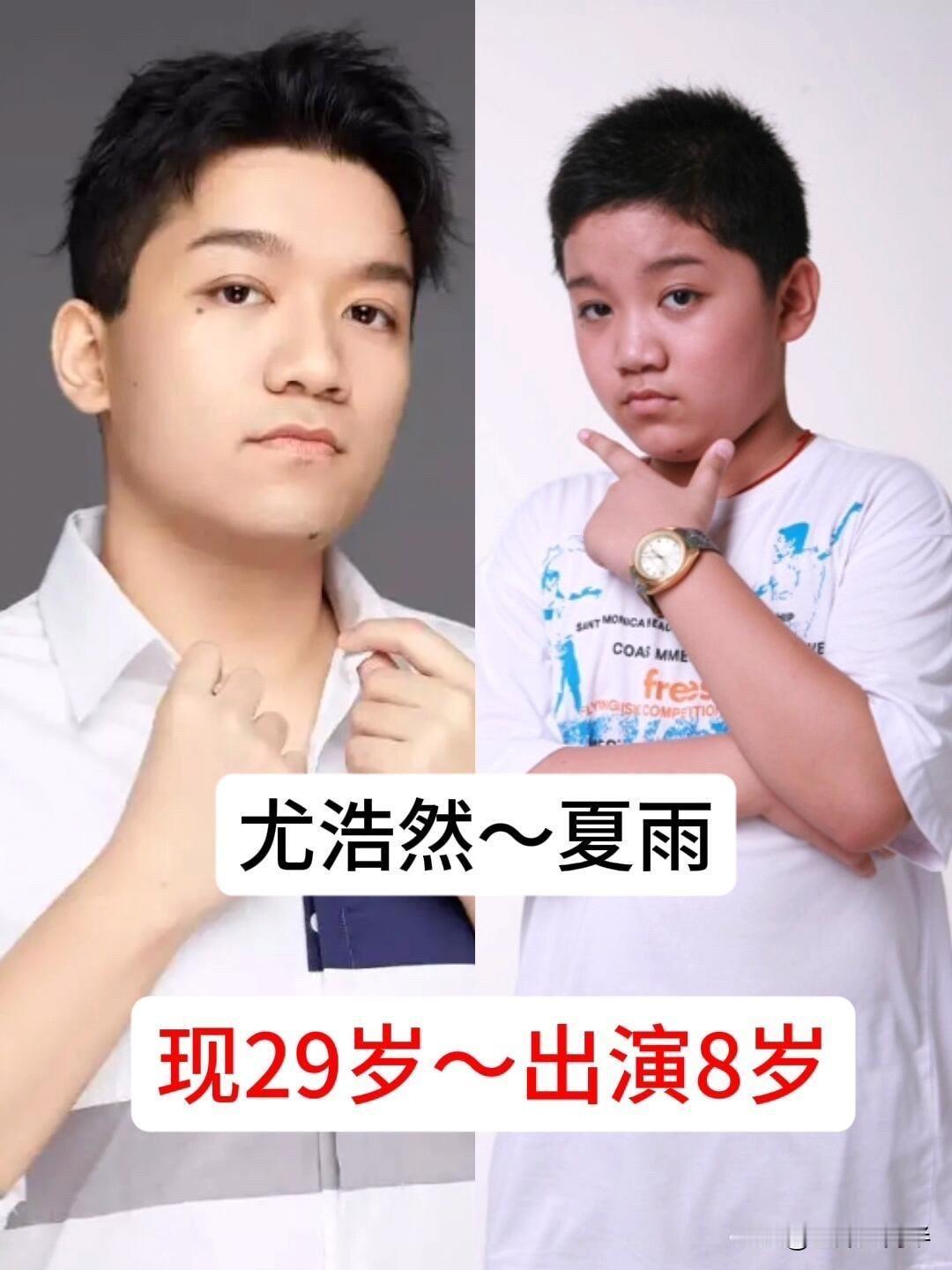 “你的童年,我的童年,好像都一样……” 这调子一响起来,DNA就动了!2004年开播的《家有儿女》,那可是陪着咱这代人长大的“电子榨菜”。刘星、小雪、小雨,还有他们那对活宝爸妈夏东海和刘梅,一大家子热热闹闹的日子,好像就在昨天。 “我叫夏雨。”“我叫夏雪。”“我叫下冰雹!”小雨这开场白,没人忘得了。尤浩然演小雨的时候才8岁,胖乎乎的脸蛋,憨憨的,是家里的“团宠”和搞笑担当。 如今29岁的尤浩然,褪去了儿时的婴儿肥,长相变化不小。他的演艺道路相比“哥哥姐姐”似乎平缓一些,一直也在拍戏,但水花不大。 “我想把这玩意儿染成绿的!”刘星这小子,绝对是这部剧的灵魂!张一山演刘星时12岁,那股子机灵劲儿、贫嘴滑舌的范儿,简直像是从他骨子里透出来的,浑然天成。 张一山算是童星转型非常成功的例子。《余罪》里的痞帅卧底,让他彻底摆脱了“刘星”标签,证明了自己能演复杂成人角色。《柒个我》里一人分饰七角,更是秀了一把演技。 “我是小雪的超前卫网友,狂野男孩!”这个染着黄毛、造型雷人的角色,虽然只出现了一集,但存在感极强。扮演者马可当时15岁,已经是个清秀少年。 谁能想到,这个“狂野男孩”后来凭借《花千骨》里六界第一美男“杀阡陌”一角火爆全网呢?