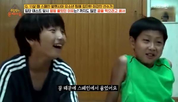 4岁时就在父亲的跆拳道馆光脚踢球的李刚仁,6岁时就参加了韩国电视节目《飞吧,射门偶像》闻名全国,并被家乡球队仁川联的青年队招入队中。而天赋突出的李刚仁,在10岁时就已经是韩国同龄球员中鹤立鸡群的存在。 已经不能再从梯队教练和身边队友获得更大提高的李刚仁,只能通过youtube的视频学习和模拟顶级球员的踢球方式,而意识到李刚仁前途远大、需要前往欧洲才能进一步提高的韩国足协,也开始积极寻求帮助李刚仁留洋的机会。 2011年11月,在瓦伦西亚青年队的入队测试时,表现优异的李刚仁,当时还只是名10岁的孩子,处处需要适应欧洲的当地生活和足球体系。起初还因为球队安排自己吃没煮熟的豆子就大哭一场的李刚仁,最终凭借自己的天赋、顽强、以及对于足球的挚爱和投入,成为了足球巨星。