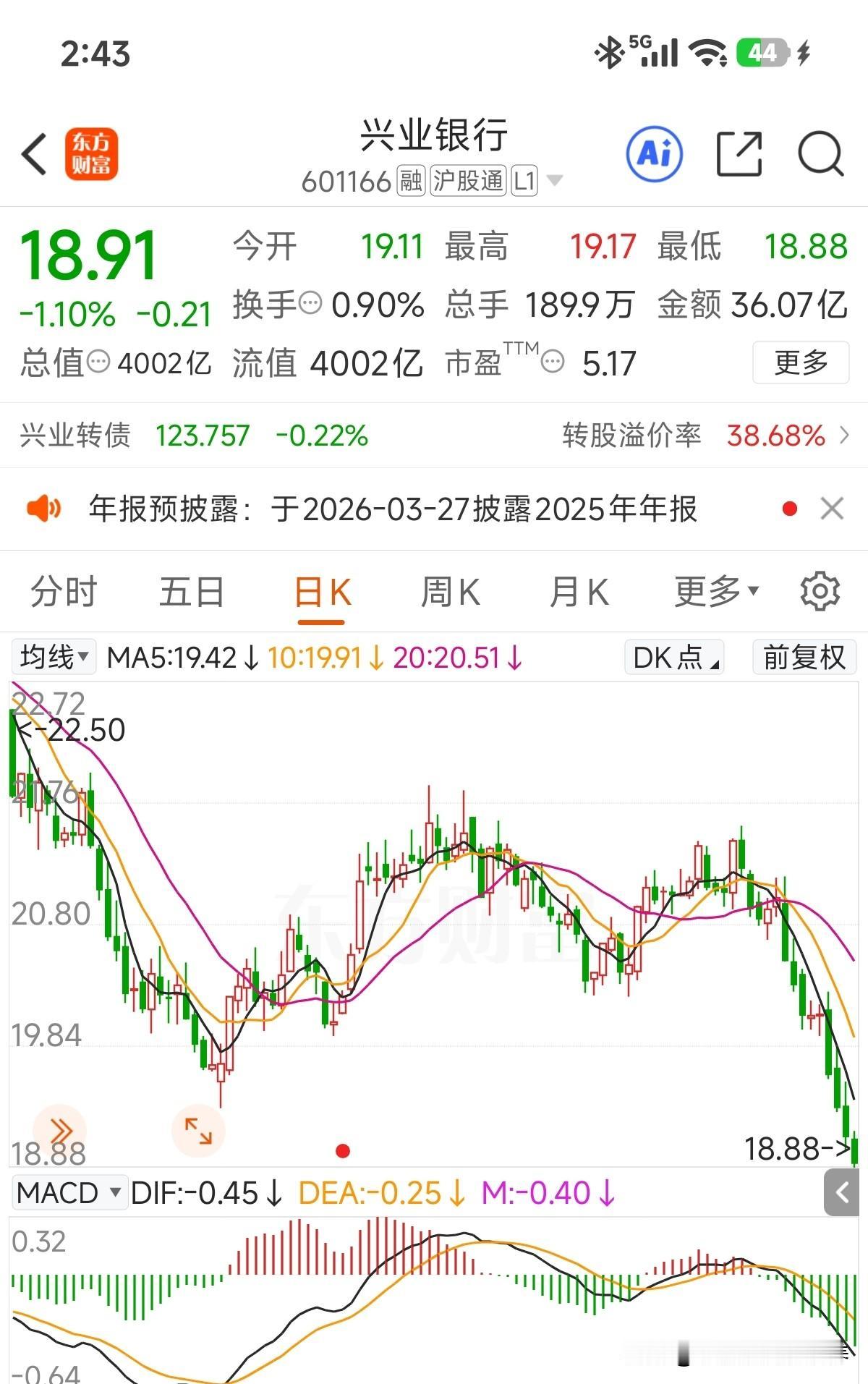 熟悉的“渣渣兴”回来了,6年多的时间,除了25年,每年都能见到18.X的兴业银行,今年开年就见到了[捂脸]! 与之前相比,现在的18.X的兴业银行股息率跟之前一样,但是现在每股净资产明显比之前增厚了不少,兴业银行这是长个子不涨年纪! 话说分红公告应该要来了吧,低迷只能靠股息渡劫了!