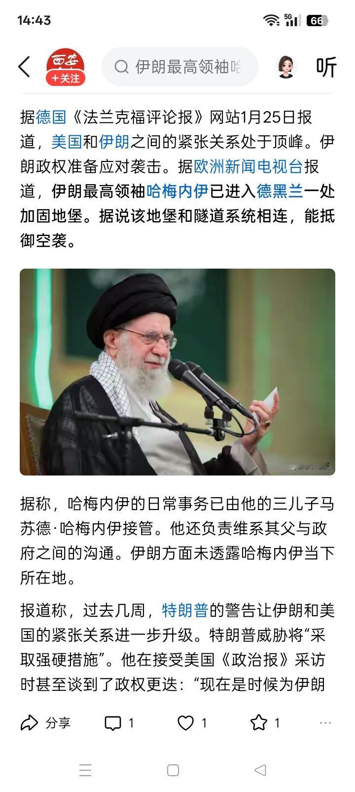 进入地堡,三儿接管日常事务? 网络上有多个消息透露,好像伊朗最高精神领袖哈梅内伊已经进入地下坚固的堡垒,并且这个堡垒不是孤立存在的,而是与地下遂道网络系统相联相通,可以随时转移。 而哈梅内伊地面上的日常工作,有传闻说已经交给的他的三儿子马苏德·哈梅内伊负责。同时,马苏德还负责哈梅内伊与地面上的伊朗政府和革命卫队等方面的联系,传达哈梅内伊的指示、命令等。 这种情况,究竟是如何具体实施的?特别是哈梅内伊三儿子马苏德,无疑在这其中有特别重要的作用,甚至是举足轻重的决定性作用。因为从目前获得的信息看,好像除了马苏德可以接触和传达哈梅内伊的指示、命令之外,眼下没有发现别的什么人物在其中可以起到什么作用。 尤其是,在目前美国对伊朗的军事威胁步步紧逼,双方拔剑弩张的时候,自然有许多军国大事需要即刻决断。而估计马苏德,不可能事事都赶忙跑到那个高度机密的地下堡垒,去见他的父亲,获得指示和命令。那么,在某种程度上,哈梅内伊和三儿马苏德,是不是无法区分呢?