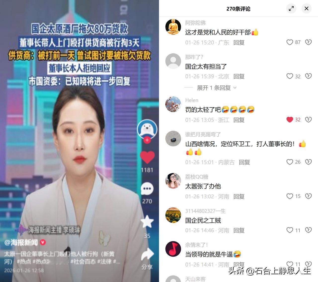 欠80万还上门打人,国企董事长只拘3天? 某国企拖欠民企供货商80万货款,讨账不成反而被董事长带人打进医院,结果涉事人仅被行政拘留3天。 这事击中了多少中小商家的痛点,跟体制内背景的企业合作,订单是香饽饽,可账一旦拖上,讨起来比登天还难。你敢催得紧,对方一句走流程能顶回来,真撕破脸,下次合作的门直接给你焊死。 更讽刺的是,有些握了点权力的人,把平台身份当成了自己的免死金牌。欠账的比要账的横,动手打人还觉得理直气壮,这哪里是企业管理者,分明是被权力惯坏的土霸王。 至于3天拘留的处罚,难怪大家都坐不住了,大家在意的不仅仅是这3天,更怕身份特权在规则里开了口子。 如果权力能凌驾于情理之上,那普通商家的合法权益,谁来撑腰? 什么时候讨账的不用看欠账的脸色,公平才不是一句空话。