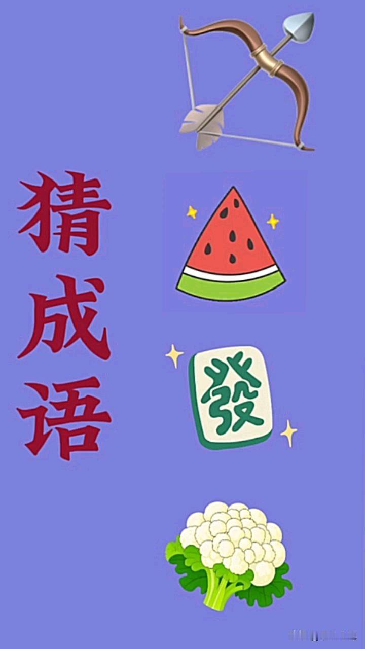 🔥全网疯猜!这道看图猜成语你能秒答吗?家人们,又到了考验脑洞的时刻!👀 一把弓箭、一块西瓜、一张“發”字麻将,还有一颗白白胖胖的菜花,这四样风马牛不相及的东西凑在一起,到底藏着什么谐音梗成语? 我盯着图琢磨了三分钟才恍然大悟,这脑洞也太清奇了!悄悄提示一句:答案和“发财”有关哦~🤫 快把你的答案打在评论区,看看谁是第一个解锁谜底的大神!也别忘了拉上你的饭搭子一起烧脑,评论区比比手速,看看谁才是真正的成语小天才!