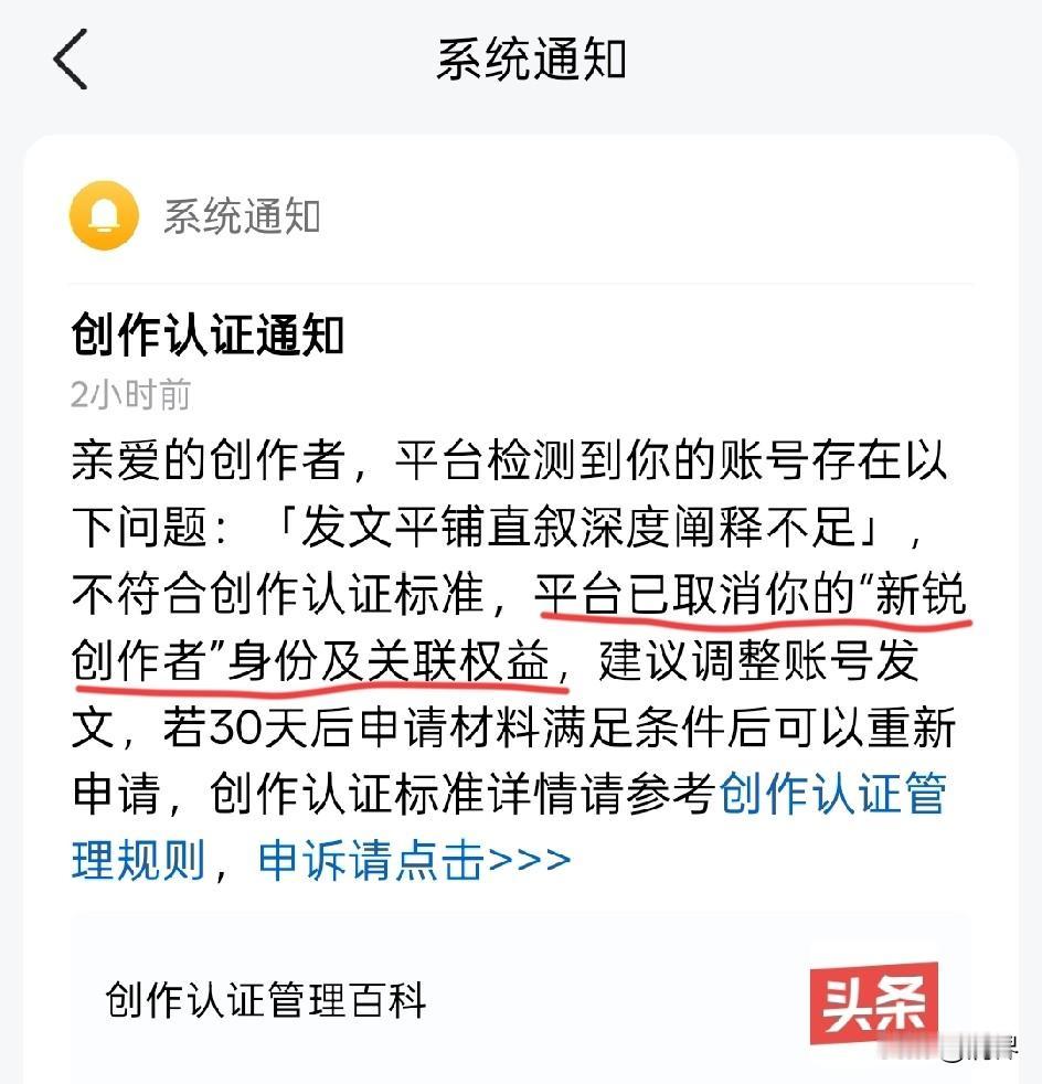 “领航创作者”申请多次未通过,我的头条“新锐创作者”竟反倒被取消了!但我一点也不埋怨平台,在这个各行各业都极度内卷的时代,我知道自己的水平确实跟不上了。 曾经市场行情好的时候,一篇文章收入好几千,现在头条挣钱也不容易,给作者的分成和鼓励越来越少,反而受其它行业影响,来头条兼职的人越来越多,各位大神们大显神通,输出的内容一篇比一篇优秀,也导致我们这些停滞不前的作者收入急剧下滑,甚至被筛选掉。 曾经觉得即使失业了,靠着自己在平台上的内容输出,也能挣够一个月的生活费,现在看来,还是我太天真在头条上的文章收入也很大程度受市场影响。 不过我也不会灰心,反而让我看清了本质及时作出调整。那就是,工作坚决不能丢,写作只能当做副业,而且一定要坚持,虽然现在收入每天只有十几二十块,但只要市场一向好,那收入必将井喷。 大家一起加油吧! 创作者 新锐创作者困境 创作者上热搜