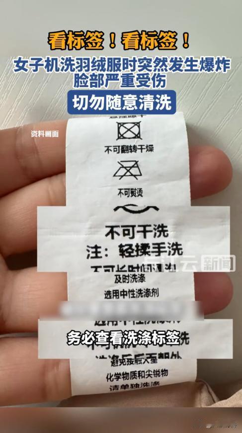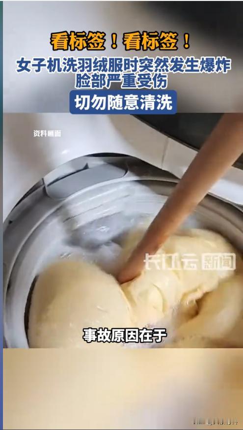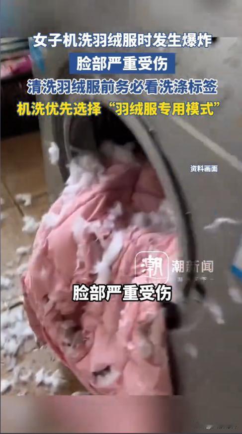 “悲剧还是发生了!”近日,一女子在家大扫除时,看见羽绒服脏了,就将衣服直接扔进了洗衣机,不一会洗衣机就发出异常响动,女子上前常看时,洗衣机竟瞬间爆炸,导致女子面部直接受了伤,随后被送往医院。网友:羽绒服不能用洗衣机洗吗? 羽绒服是冬季保暖必备,很多人觉得机洗方便又省事,可谁能想到,这看似平常的操作,竟暗藏着爆炸风险。 据媒体1月26日报道,女子入冬后一直穿着羽绒服保暖,这天在收拾屋子时看见自己羽绒服脏了,就想着用洗衣机洗一下。于是也没查看洗涤标签,直接将羽绒服扔进了洗衣机,按下启动键后就等着洗完晾晒,完全没意识到危险正在逼近。 洗衣机转动几分钟后就传来异响,还伴随着异常的震动。于是女子便上前查看,没想到,刚把头凑过去,洗衣机就“嘭”的一声巨响,直接炸开了,强大的冲击力直接将洗衣机舱门盖冲了出去,一下打到女子脸上。 女子顿时感到眼前一黑,随后脸上传来剧烈疼痛,鲜血直流,反应过来后就见满地的羽绒服毛,而后家人赶紧将其到医院,好在治疗后没什么大事。 但是好端端的洗衣机怎么就炸了呢? 原来,一些羽绒服面料涂有特殊涂层,透气性很差,当洗衣机高速旋转时,羽绒服内部空气无法及时排除,羽绒迅速膨胀,就可能将洗衣机“撑爆”,造成危险。而女子在清洗时就是没有看标签直接扔了进去,才导致的爆炸。 网友表示,这下长知识了,洗之前可要好好看看,以前都直接扔进去洗了,还好没出事。 信息来源:《女子机洗羽绒服时突然发生爆炸 脸部严重受伤 》长江云新闻