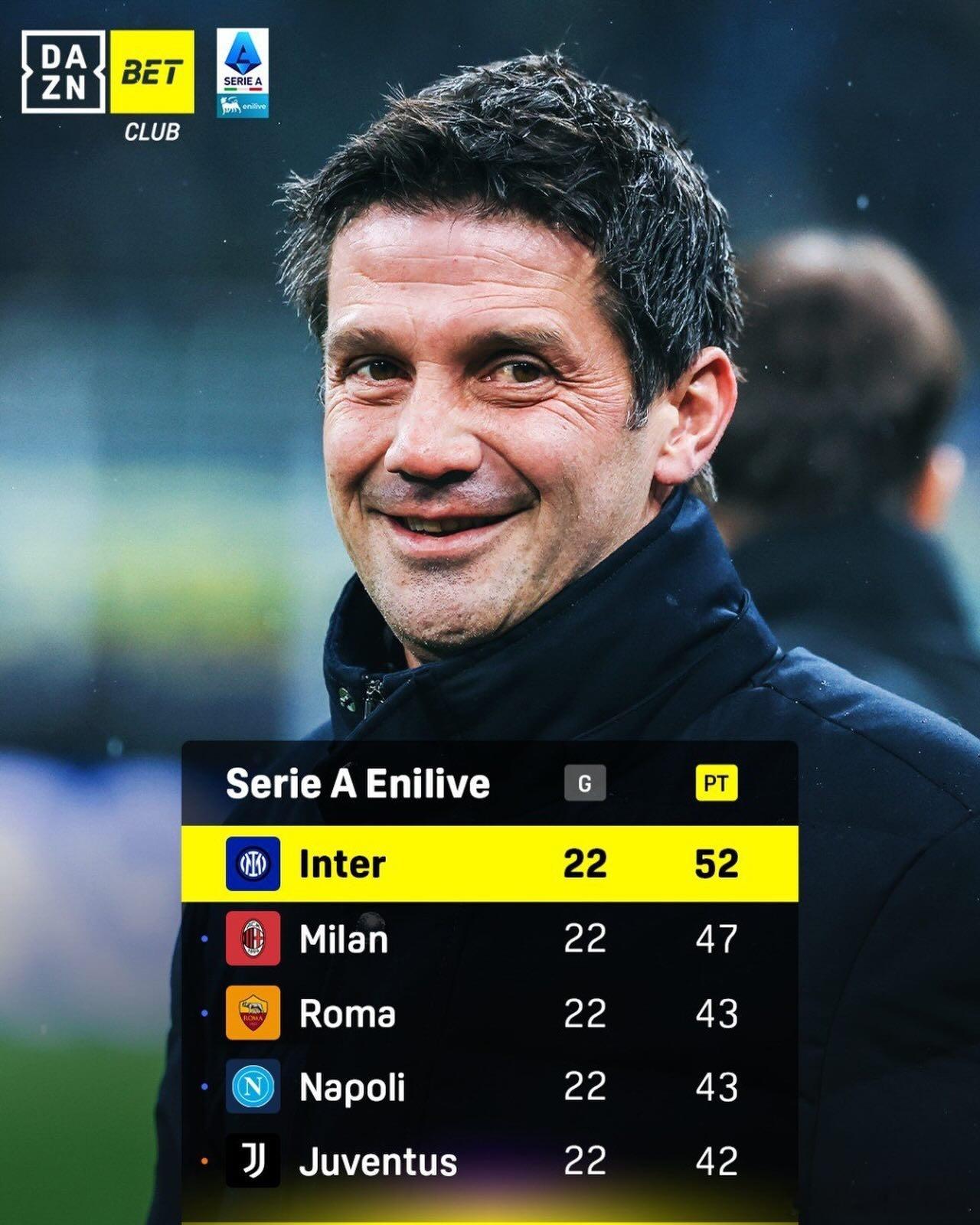 分享一个数据,意甲第8轮惨败给那不勒斯之后跌至第4,国际米兰在此后的14轮意甲取得12胜1平拿到37分(满分42分),目前领先第2名5分。💙🖤国际米兰意甲罗马1比1ac米兰