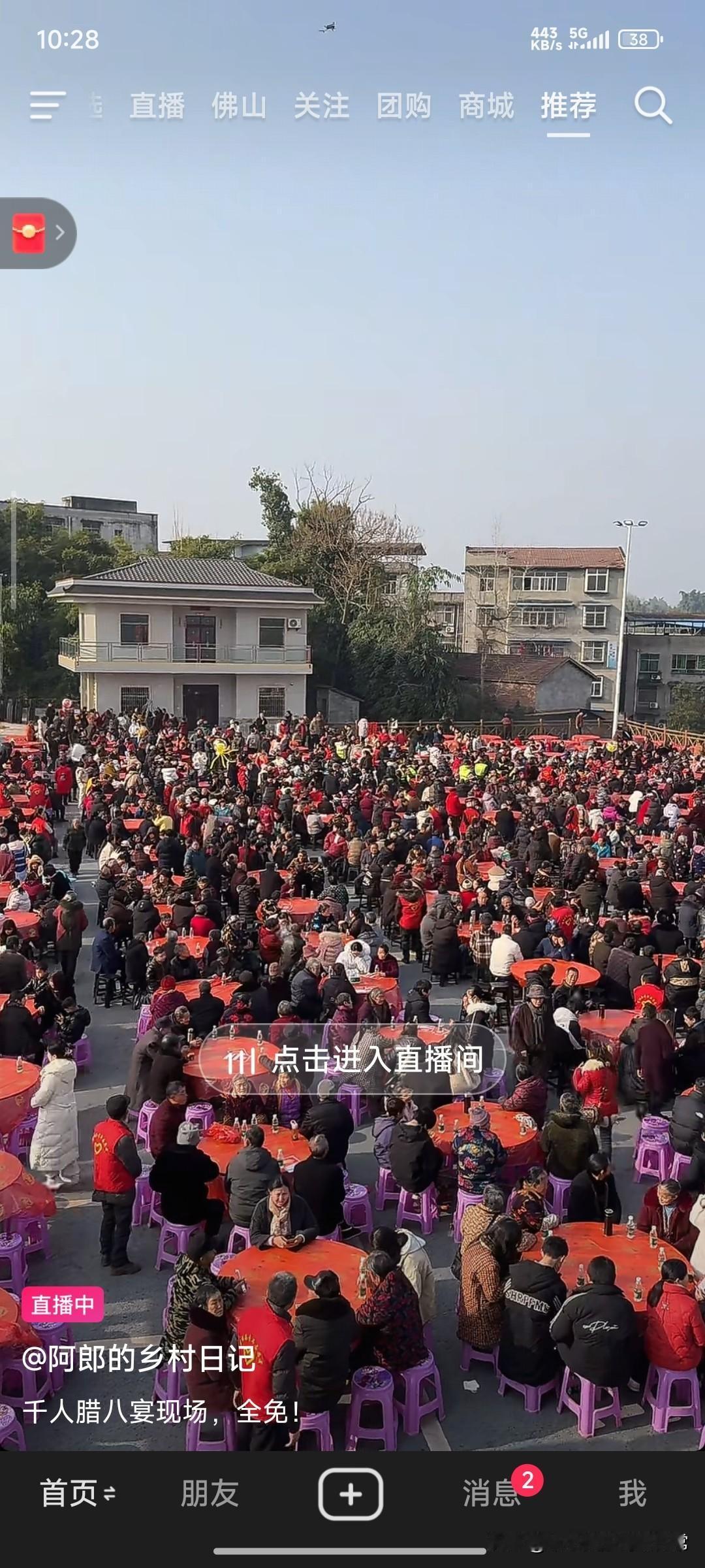 千人免费腊八宴,这才是中国人最暖的年味! 坐标自贡乡下,今天这场千人腊八宴直接把我看哭了! 红棚子、圆桌子、塑料凳,一眼望不到头的人潮,全是村里的叔伯阿姨爷爷奶奶。没有精致摆盘,就是大碗熬的腊八粥、刚蒸好的腊肉香肠,大家挤在一起吃得满头冒汗,笑声比鞭炮还响。 有人说现在年味淡了,但在这里,我看到了最浓的烟火气。村里在外打工的老板凑钱办的宴,就图让留守的老人孩子热热闹闹过个节。没有商业套路,只有乡里乡亲递过来的一杯热粥、一句“多吃点”。 比起城里冷冰冰的外卖,这种挤在人群里抢着尝一口热乎的感觉,才是刻在中国人骨子里的浪漫。你说,这样的年味,是不是比任何跨年晚会都让人踏实?