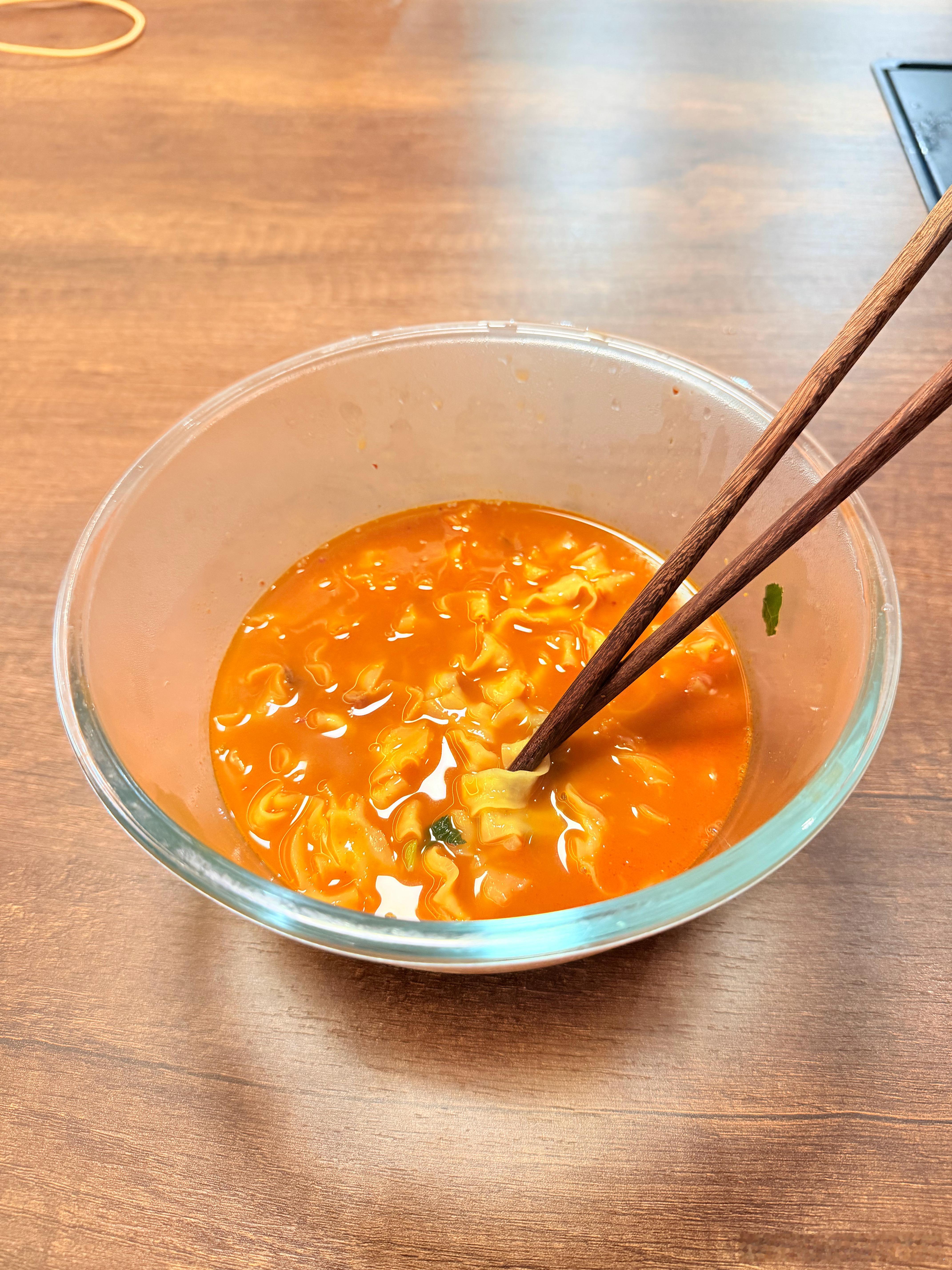 工作室加班 本来想给自己加个菜 想想算了 吃碗泡面吧 省下的钱给你们发铁粉红