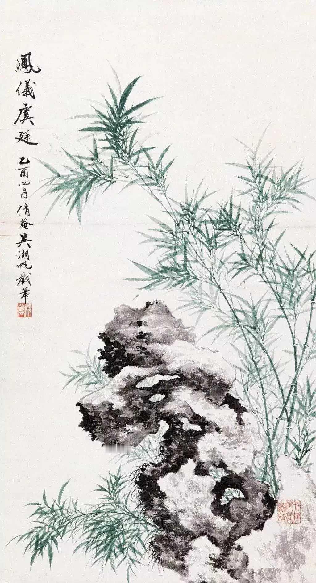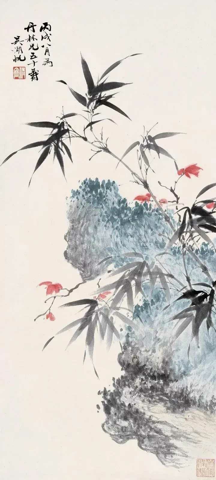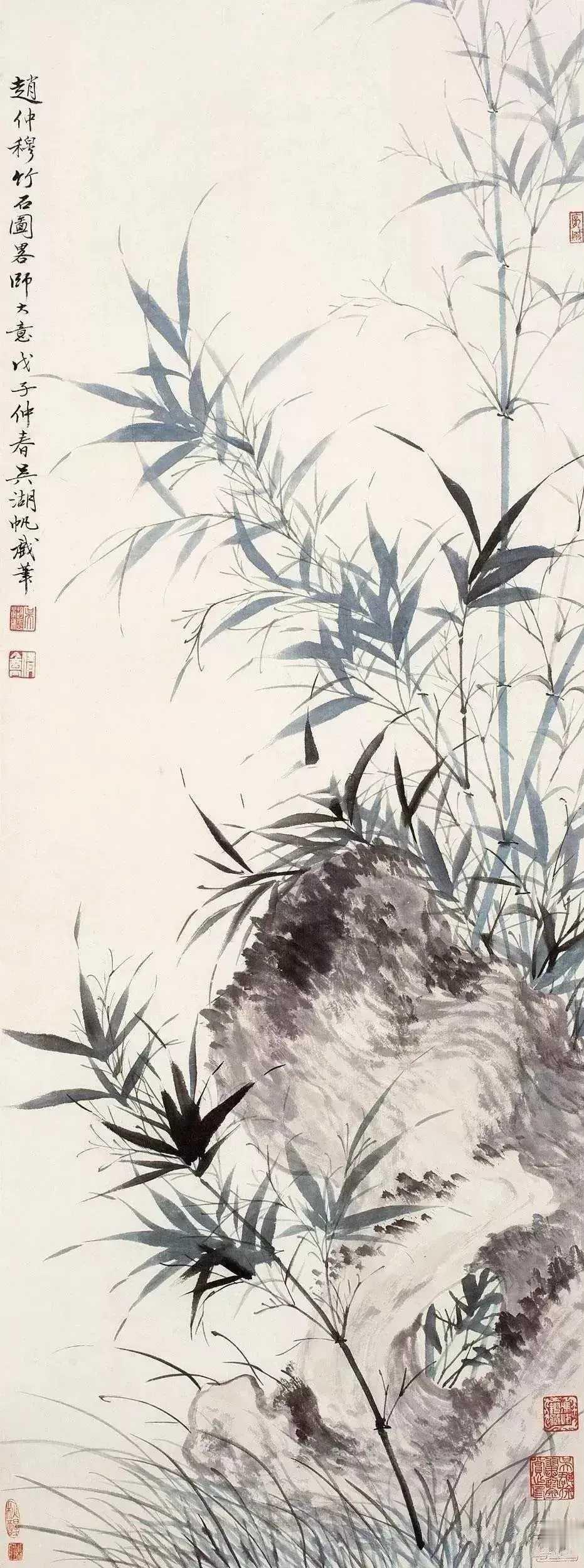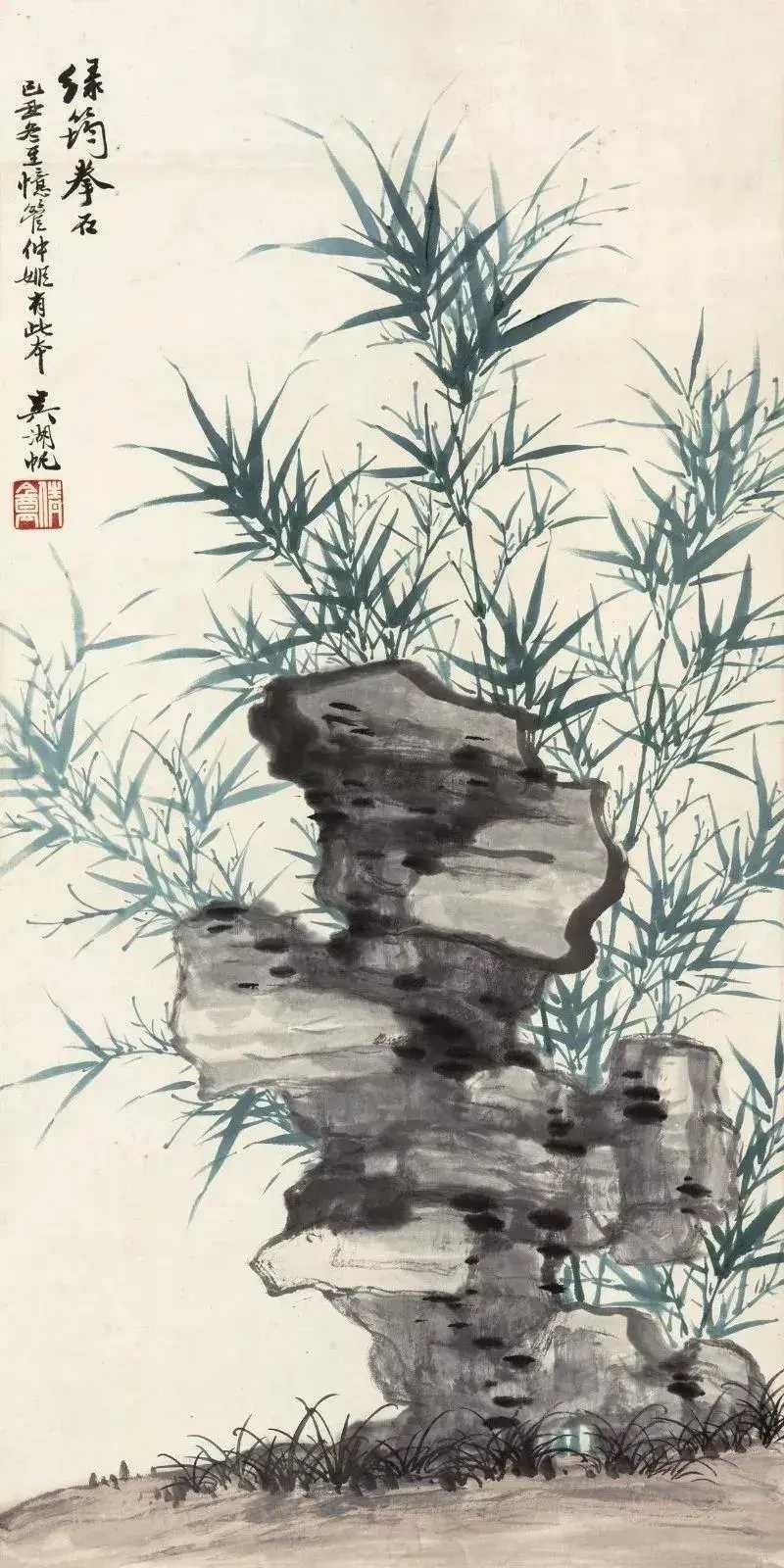 吴湖帆写竹,特别讲究色彩的搭配。他巧妙地运用墨色的深浅变化,让竹子既有层次感,又不失整体的和谐。就像音乐中的和声,各种音符相互交织,共同营造出一种美妙的氛围。这就是中国风遇见艺术