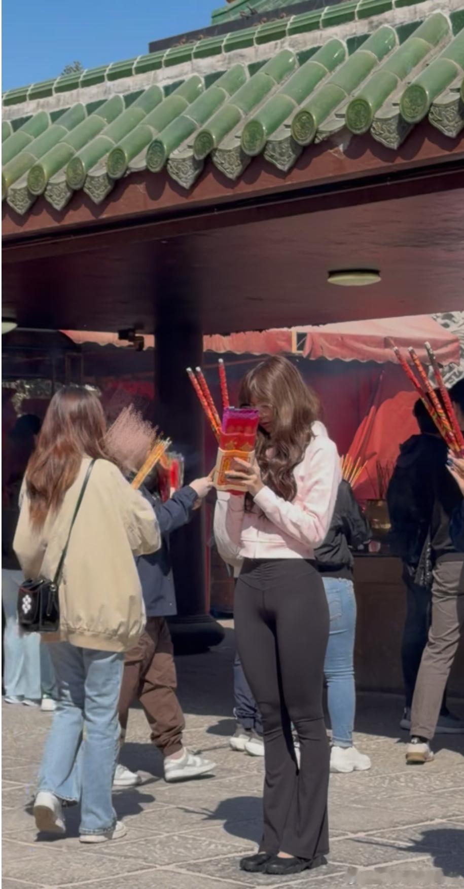 香港偶遇Lisa拜神素颜状态也太好了吧,私下穿搭好随性可爱