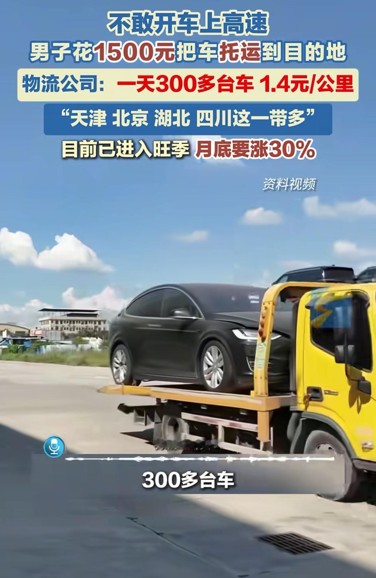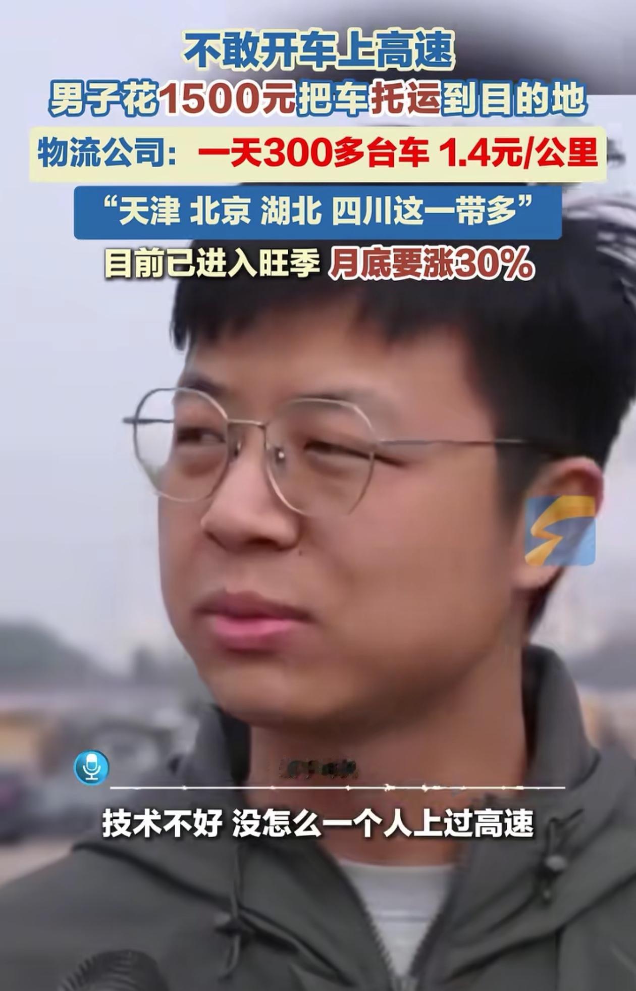 人怎么能聪明成这样?浙江杭州,男子回老家,不敢开车上高速,于是想了个办法,花1500让人把车托运回老家。网友:“这种司机很好,知道自己技术差不上去添乱!” 像这样有自知之明的司机真的不多了。 虽然他有驾照也能上高速行驶,但他对自己的技术很没信心,上高速开总感觉心里没底。 就在这时,他看到物流公司有托运车子的服务,于是就去问了一下。 对方明码标价,拖运费按公里数计算,一公里一块四左右,像男子这一趟下来可能得花个1400左右。 但男子觉得这个价钱不算贵,还挺实惠,于是就下了一单。 实际上,像男子这样办托运的人不在少数。尤其现在马上要过年了,类似的需求更是直线上升,平均一天下来能有40板,300多台车。 而且这个还有地域偏好,像来下单的顾客,大部分都是湖北、天津、北京、四川这些地方的。 由于需求太多,供不应求,所以物流公司也考虑进行一波小涨价,大概涨幅在30左右。 这件事也是引起了网友的热议,有网友觉得这样挺实在,省了过路费和油费,而且还不会疲劳驾驶。也有网友觉得没必要吧,不如租个车更方便。 不得不说这个价钱确实挺便宜的,也不怪物流公司接下来要涨价。 不过像这种情况,其实真没必要非把车子托运回去,倒不如像有些网友说的,干脆租个车,既省钱又方便,还不用担心路上车子出什么事。 换成是你,你会选择给车子托运还是到地方租车呢? 信息来源:闪电新闻