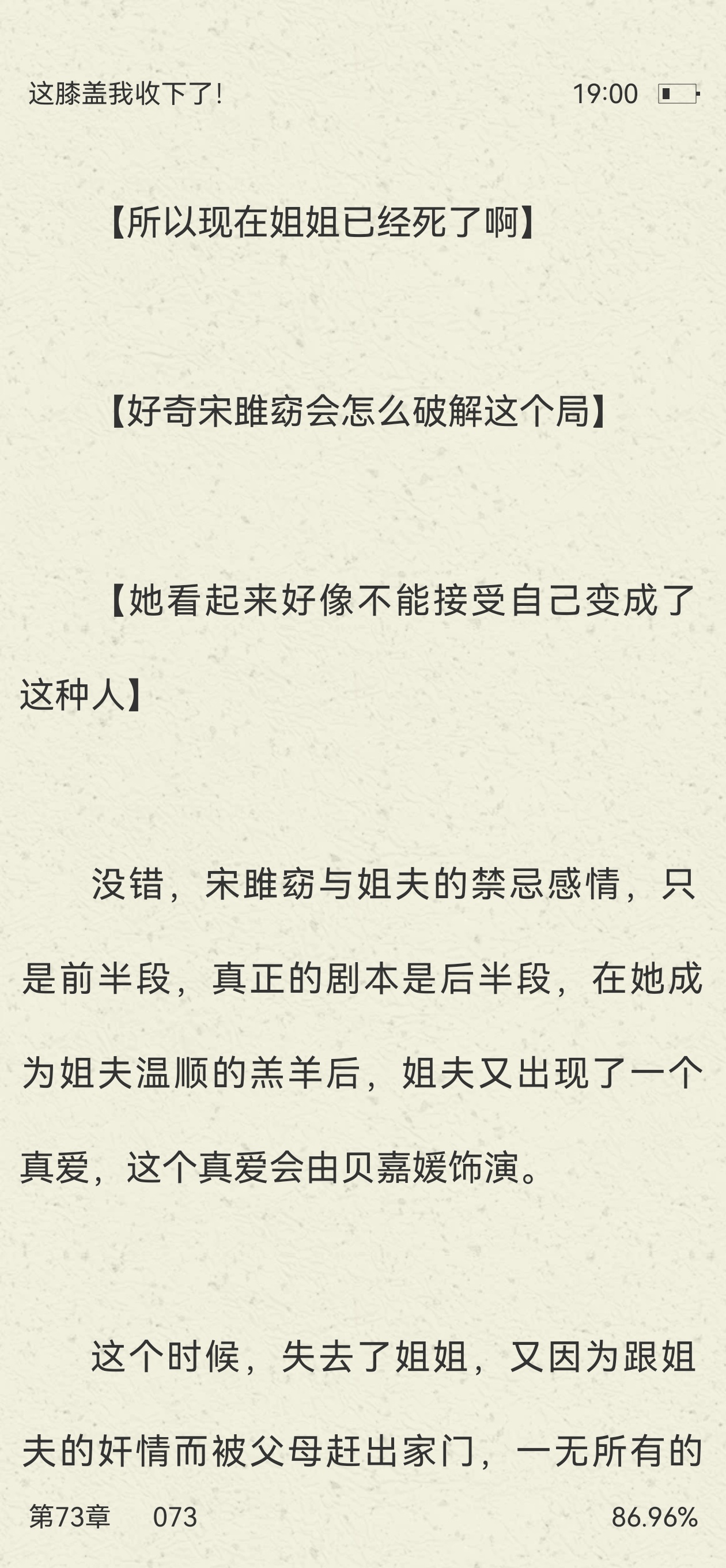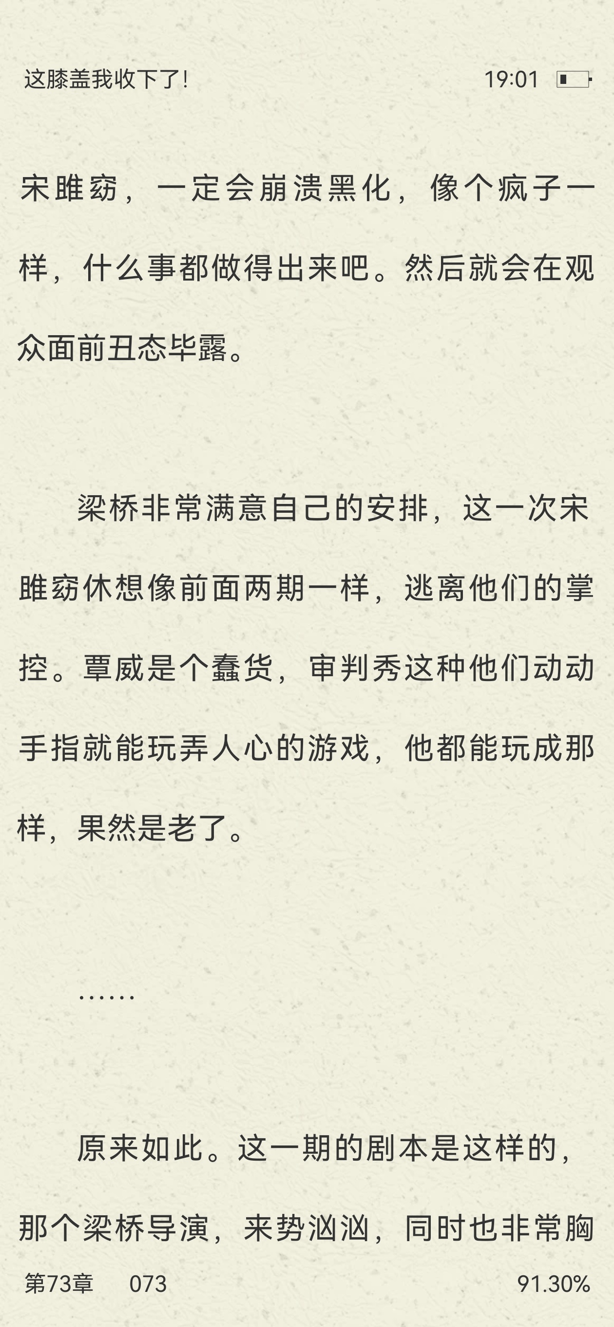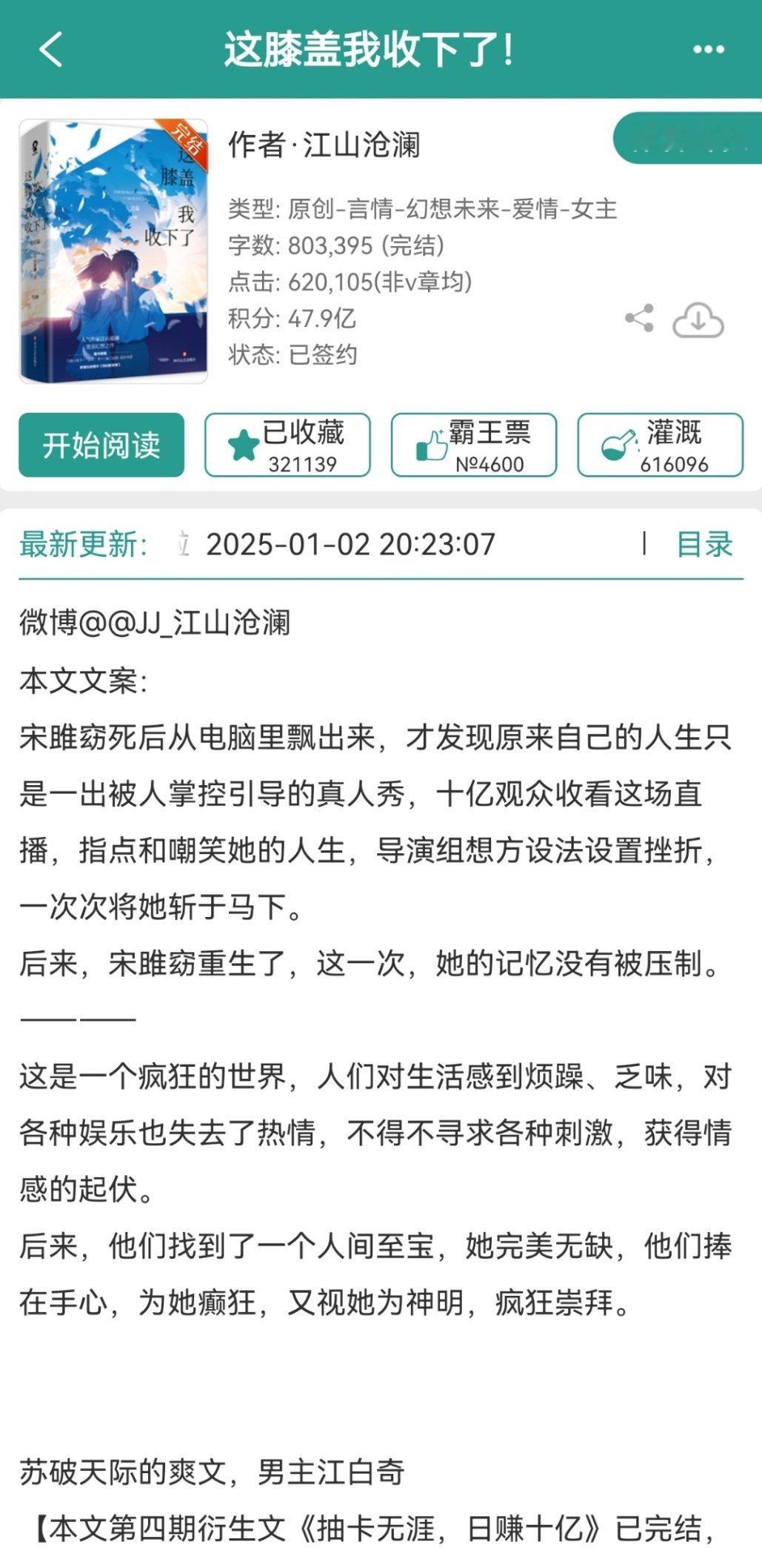 这小说好看的要死,怎么都没人跟我推荐过!跟漫画万人嫌自救指南有一点像,也是女主活在外界聚光灯下自救的故事。漫画万人嫌是要面对男频作者的恶意打压剥削献祭,女主脱离作者的设定疯狂长出血肉最后挣脱小说本身去到了作者所在的世界。《这膝盖我收下了》的女主是地球人穿越到其他星球的帝国,被冤枉强奸杀人而选择进入虚拟世界进行人性的考验,第一次她失败了 没有人能在节目组安排的恶意剧本里保持善良。女主死后重生回到了她进入虚拟世界考验的第一期,这次她的记忆没有被抹除。目前看到第三期了,女主每次跳出节目组安排的既定悲惨命运表演真善美获取网友的喜爱和心疼为她投申冤票,太好看了太好看了。虚拟世界的NPC都是现实中人的人格投放,还有很多精彩伏笔我就不剧透了