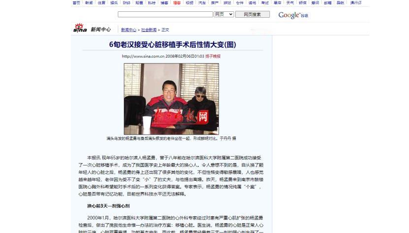 2000年1月,哈尔滨一个26岁小伙意外去世,在去世之后,他的心脏移植到了一个将近60岁的老汉身上,自从移植了这颗心脏后,老汉的所作所为,可把家里人给“吓”坏了,当他们把杨孟勇的变化说给医生听的时候,医生一个个也被惊呆了,那这到底发生了什么? 事情还要从2000年1月说起,一位26岁的小伙意外离世,家人悲痛之余,决定捐献他的心脏,让生命以另一种方式延续。 而当时57岁的杨孟勇,正被终末期心脏病折磨得苦不堪言,连爬三楼都要歇两三次,喘得抬不起头。 要知道,心脏移植属于四级高难度手术,55岁以上就属于高风险人群,成功率虽不低,但术后恢复难度极大。 杨孟勇心里清楚手术的风险,可他不想再被病痛折磨,抱着“拼一把”的心态躺上了手术台,心想“活不成就算了,也省得再遭罪”。 万幸的是,手术非常成功,术后第三天,杨孟勇就凭着一股莫名的劲儿,撑着病床坐了起来。 但谁也没想到,这场救命的手术,不仅挽回了杨孟勇的生命,更彻底改变了他的性子。 术前的杨孟勇,是个温文尔雅的文学编辑,一辈子与笔墨为伴,性子内敛温和,不喜欢热闹,除了伏案写诗、编辑文稿,几乎不看电视,更别说街头巷尾的球赛。 可术后不久,他竟会主动蹲在路边,盯着人家摆的小电视机看足球赛,球员进球时,他会激动地跳起来拍手喝彩,嗓门大得能惊动旁边的路人。 穿衣打扮上,他更是来了个一百八十度大转弯,衣柜里那些穿了多年的旧中山装、素色衬衫,被他一股脑扔到一边,反倒翻出儿子的红色运动服、亮色T恤,迫不及待地往身上套。 这一切,可把杨孟勇的妻子愁坏了,两人相伴四十年,她早已习惯了那个温文尔雅、沉静内敛的丈夫,看着眼前这个“陌生”的男人,心里满是困惑与别扭。 杨孟勇心里也不好受,他也说不清自己为什么会变成这样,直到后来,医生才悄悄告诉他们,他移植的这颗心脏,来自那位26岁的哈尔滨小伙,小伙生前热爱运动、性格开朗,最喜欢足球,也总爱穿亮色的衣服。 一时间,“心脏带记忆”的说法,在杨孟勇的家人之间传开了,不少人猜测,是不是小伙的记忆和习惯,跟着心脏一起,转移到了杨孟勇身上。 但医生也明确表示,目前医学上,并没有明确证据证明“心脏带记忆”,心脏的核心功能是泵血,并不具备储存记忆的结构,记忆和性格,本质上是由大脑神经系统决定的。 杨孟勇的变化,更可能是术后心理作用——经历过生死考验后,人会不自觉地释放内心压抑的渴望,换一种活法。 后来杨孟勇自己也看淡了,他没有再纠结变化的原因,而是把术后充沛的劲儿,全都用在了写诗上。 从前的他,虽热爱诗歌,却因常年被病痛折磨,早已没了创作的动力;而现在,灵感如同泉涌,每天都会写一首诗,三个月就攒出了一本诗集,取名《太阳传奇》。 日子一天天过去,妻子也慢慢理解了杨孟勇的变化,不再别扭委屈,偶尔会笑着拉着他的手,叮嘱他“慢点跑,别摔着”。 其实,心脏到底能不能记住记忆,或许并不重要,重要的是,这颗跨越年龄的心脏,不仅让一个濒临熄灭的生命重新绽放,更让杨孟勇找回了生活的热情与勇气。[机智]
