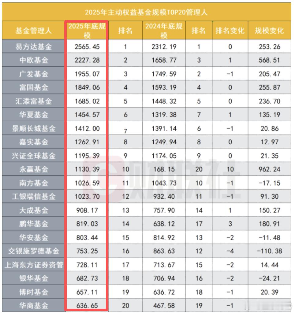 现在一个基金公司主动权益合计规模,都赶不上最大的ETF规模了~大家也别说基金经理