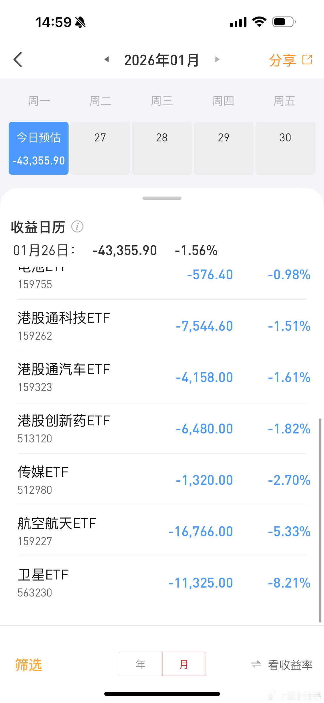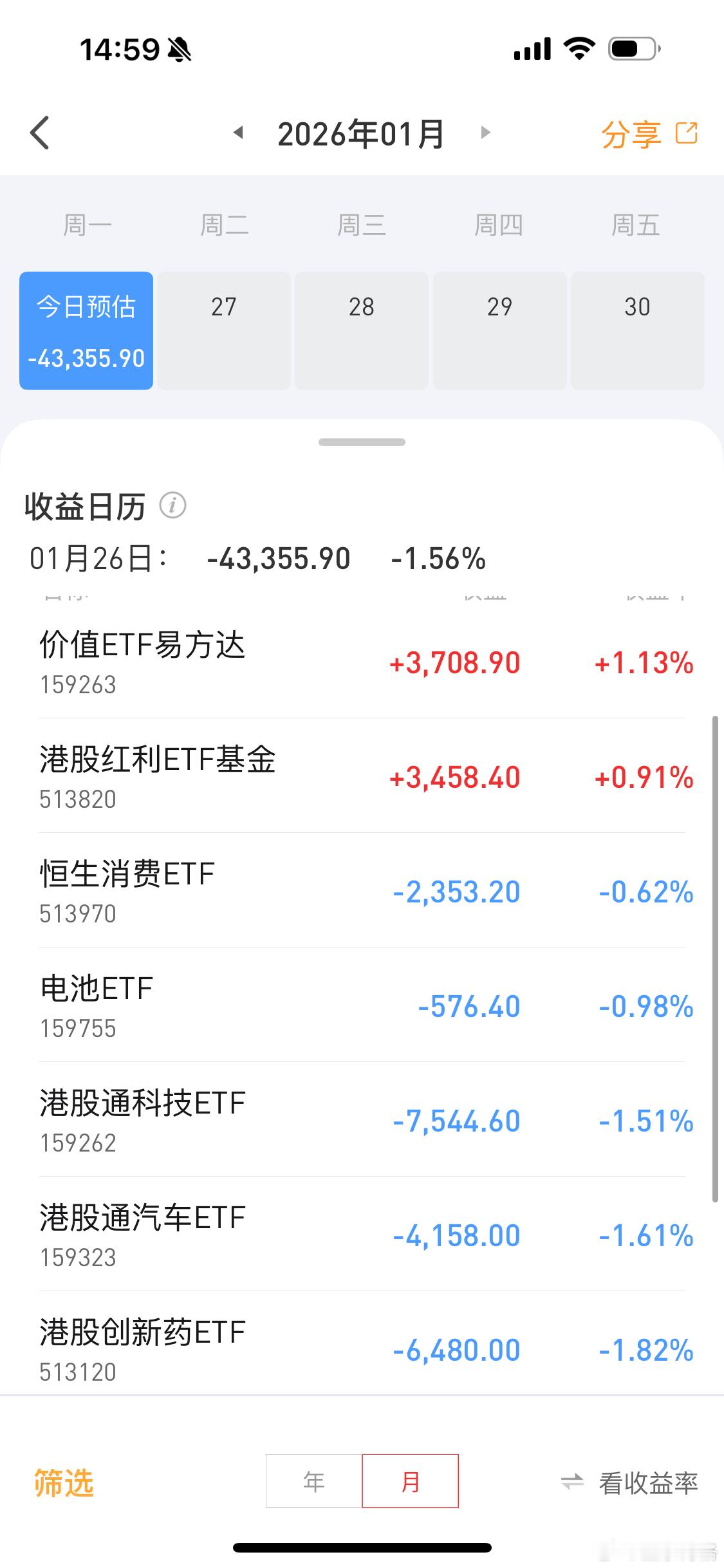 今天净值出来了:场内ETF账户今天盈利2.4万(资产240万);场外基金账户今天