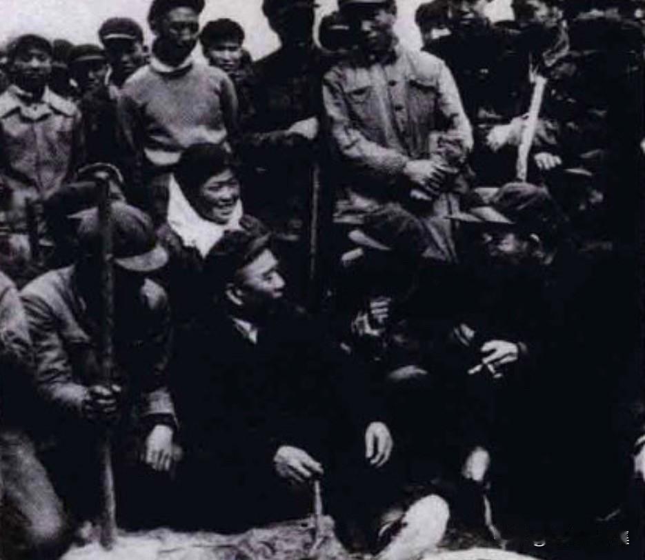 1960年3月,​国家农垦部部长王震在农一师塔里木开荒工地与军垦战士亲切交谈。王
