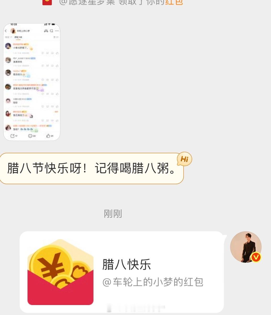又是腊八快乐,又是男神的……这让小梦情何以堪呀话不多说了,腊八快乐~Only超跑梦小梦狂宠粉丝车轮上的小梦的红包
