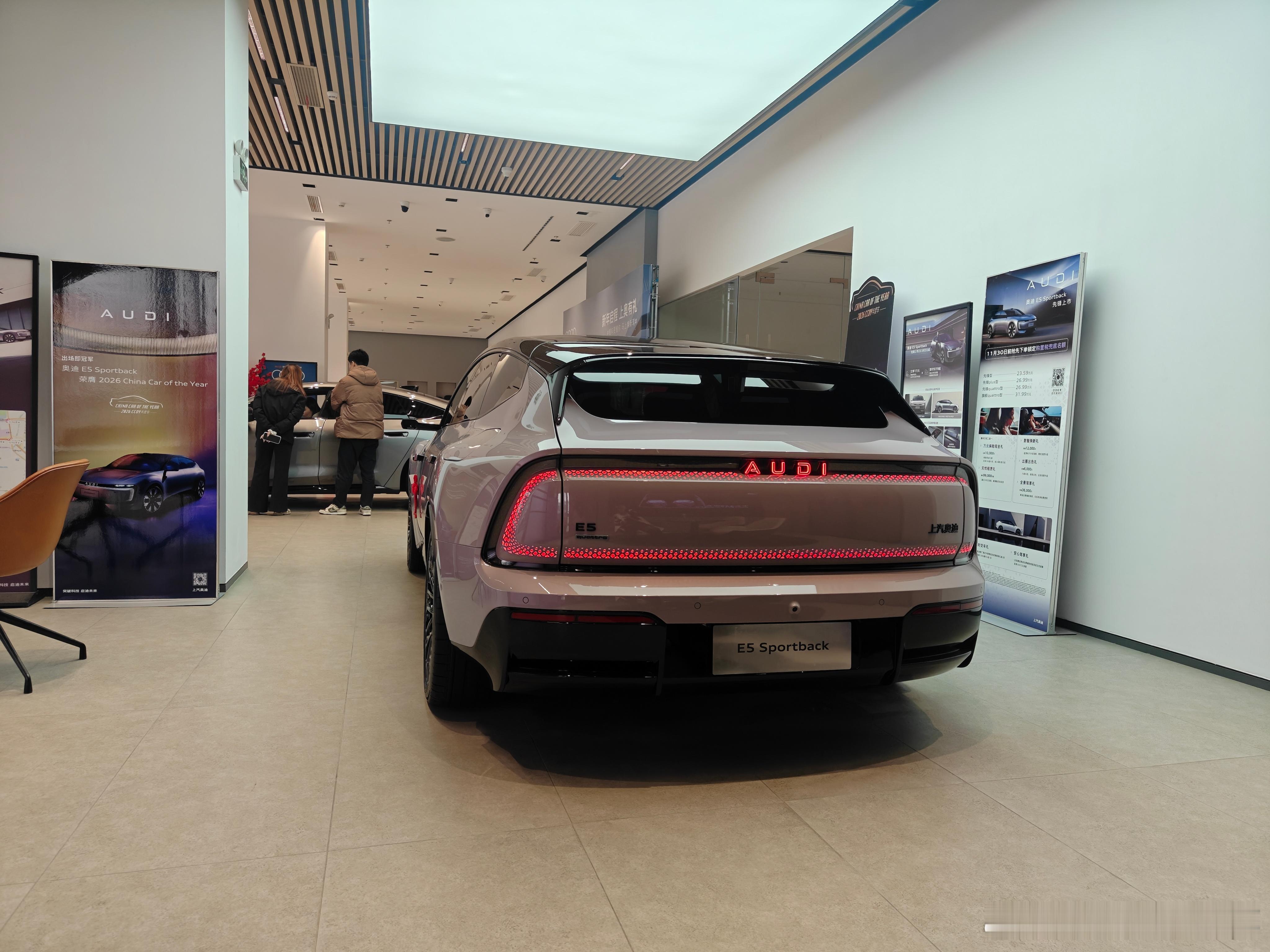 老蒋原创 试了试奥迪E5 Sportback背景大概是本身想利用这个机会多试驾几台合资品牌的BEV轿车,但有那么几台车迟迟都没有试驾车,索性就抽空先把这个开了。外观的话看久了还是挺协调。前45度有点奥迪ESQ概念车的神韵,未来科技感拿捏得不错。而且挡上标也能大概看出来是个奥迪汽车。尾部造型我不太喜欢,主要是环状尾灯占据面积过大。坐进车内,感觉是复古和现代相结合的感觉。近似包豪斯的简约设计,配以必要的实体按键,没有太多冗余的装饰。车内空间以这个尺寸来说说得过去,头顶空间还比较充裕。不过座椅舒适性确实差了些,两排座椅的腿部承托都不太理想,椅面承托性也稍差。另外这个车主驾驶有个比较明显的人机问题,内后视镜相对于驾驶员眼点位置偏下,导致右前方的视野遮挡较为明显。车机是我认为比较大的亮点。屏幕采取仪表和中控娱乐屏贯通设计,黑边不明显,并且和电子后视镜的屏幕配合较好。仪表盘信息极为丰富,驾驶相关的内容一览无余。中控屏创新采用console处的触控岛进行操纵,感觉是奥迪工程师对于远程控制的执念了。中央的Touch Bar可以点按也可以手势操作来切换菜单,左右两个机械旋钮则可以通过自定义来更改控制设定。中控下放为语音助手的虚拟形象,轻敲面板可以唤醒语音助手,实用度不错。一些按键的触感质感还保留了奥迪特色的微动开关的质感,门板上采用了北美进口的实木。不过整体高级感的氛围营造我认为有失奥迪水准,特别在这个国产新势力大行其道的年代,这台车上没有给我看到太多传统豪华品牌对于品质感的独到见解。静态展车搭载的是bose品牌音响,实际听感比较接近上一个时代老牌豪华品牌的音响听感,解析度够,声音纯粹清澈,但感觉功率推得不太足,缺乏第一印象的好感。动态驾驶,我驾驶的是一台先锋quattro车型,没有搭配空气悬架和四轮转向,双电机但是不是极致动力性的设定。实际加速体感在4秒多的样子。整体动力的释放还是相对绵柔的,即便是放在动态模式下一脚Kick Down下去也能感觉动力释放有个过程,乘客体验较好。paddlemap设定倒是没啥问题,开起来很舒服。刹车脚感一般,主要是踩踏力偏大,这个和之前德系车那种刹车力大和坚实的感觉还不太一样,它给人的感觉是踏板行程缺润滑,包括回弹的阻尼也不太好。转向手感属于奥迪取向但又不那么明显。低速转动起来会感觉缺少一些黄油润滑感,说人话就是不那么高级。速度起来后能感觉中心区虚位较多而且电子味较为浓重。结合近期我试驾过奔驰宝马的新车对比,这台E5 Sportback的转向手感应该是相对最差的,包括也不如之前开的A5L和Q6L。底盘悬架的设定与上海表亲可以说是大相径庭。据销售说从硬件层面就完全不同,更别说软件设定了。这台被动悬架的版本从设定来说更加紧绷和贴地。对于小振动小激励的敏感度还是很高,甚至过个那种油漆减速带都会在方向盘和地板上感受明显反馈。虽然结合转向手感导致瞬态的表现不太跟手,但是稳态支撑力包括信心都极强。大曲率快速过弯能感受到外侧轮胎非常抓地,底盘也稳,可以放肆大胆开油。这一点确实是延续了油车quattro的驾驶魅力。隔音和adas部分受场地因素没太体验,至少可以说是个中等偏上的评价。停车时用了一下APA,体验比Q6L上那个定制的ADS好太多,应该是MMT的成熟方案打包过来的。总评,虽然这个车多多少少会让人想到上汽那个表亲,但整体的座舱包括动态体验差异真得太大了。近期在版型上增加了一个所谓钦定版,售价不到28万元基本除去电池和电驱外把顶配的配置都下放了,性价比也算说得过去。对于喜欢自己开车的朋友确实是一个可以尝试体验的选择。