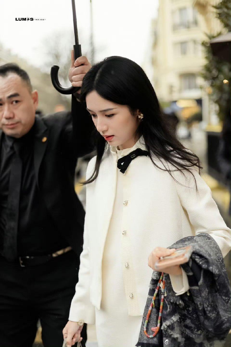 周也白色小香出街路透豪门千金既视感大波浪好美
