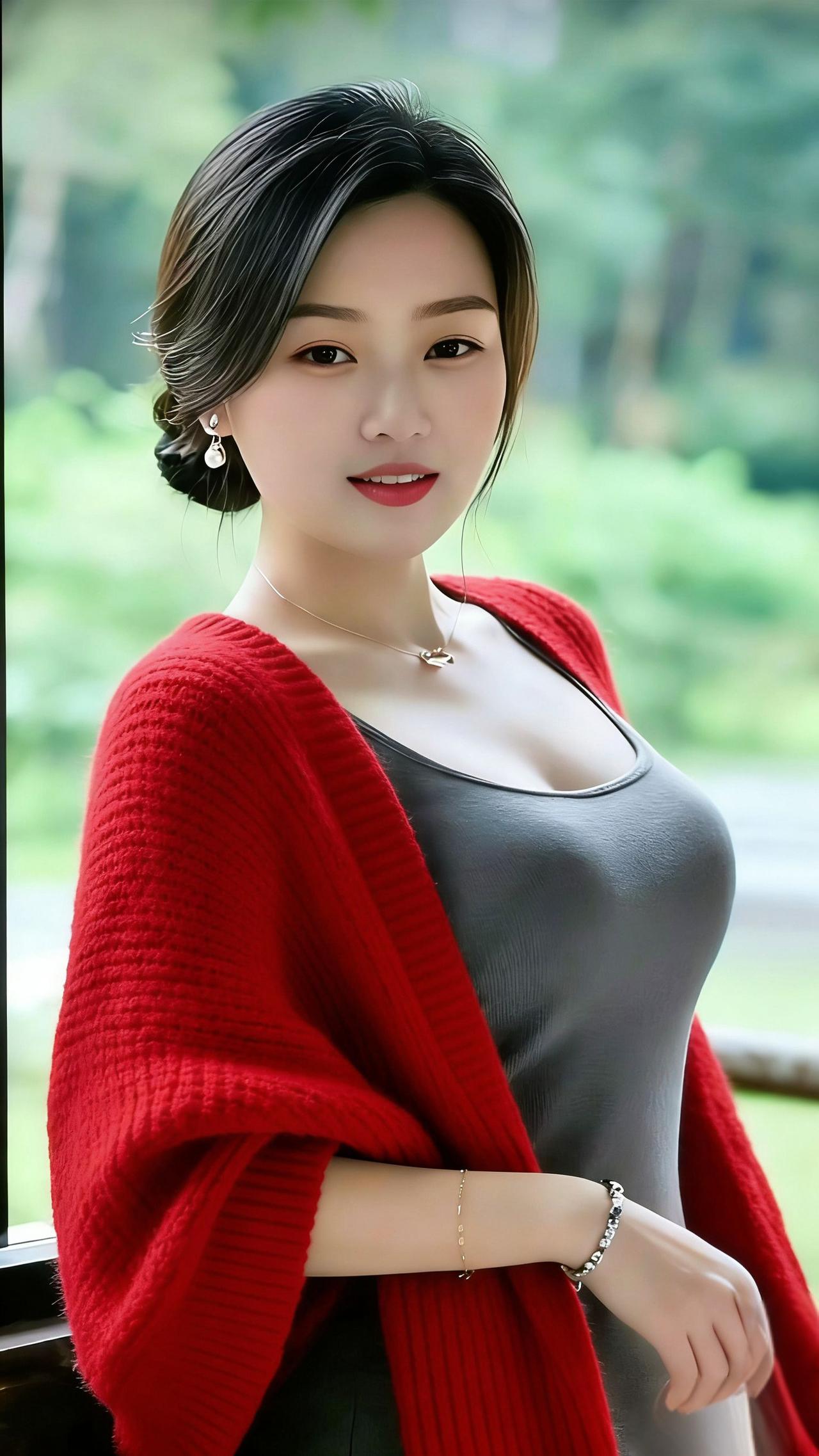 红衫伴春 窗外绿意铺成软绒,她披一件红针织衫倚在栏边,像把春日里最暖的光织进了衣摆纹理。发梢松松挽起,几缕软丝垂在颈侧,耳间银坠随呼吸轻晃,恰好碰碎肩头的光斑。 素净内搭衬得红衫愈发生动,颈间细链坠着小巧饰件,腕上叠着的链与镯,像把细碎星子轻缠在腕间。她抬眼时,唇畔淡红轻漾,连风都放缓了脚步——是春日光景里恰好落定的一帧,没有喧闹,只有暖意裹着舒展的松弛,像午后温茶的软香,淡而绵长。 舒服的好看从不是刻意精致,是红衫裹着的柔,是眉眼间漫开的静,像春里撞进眼底的那抹暖,不灼人,只让目光轻轻停驻。 春日柔暖 红衫轻息