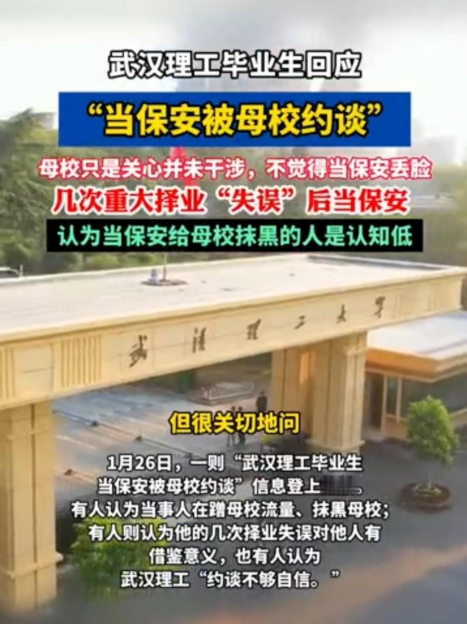 武汉理工一毕业生去当了保安,学校赶忙来“关心”。说白了,还是那点“精英包袱”在作
