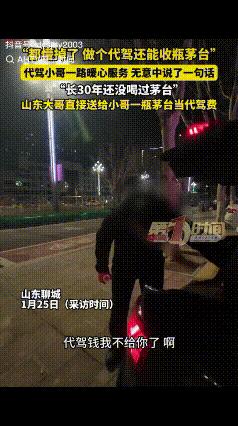 山东聊城,一代驾小哥遇醉酒大哥,将其送到家时,不料,醉酒大哥却没付钱,下车后打开后备箱:“代驾钱我不给你了,你拿瓶这个尝尝。”代驾小哥当场就懵了:做个代驾还能收瓶茅台? 1月25日,小哥像往常一样接单,到了地点才发现,客户是位喝得酩酊大醉的大哥。 这种情况在代驾行业里很常见,小哥没多想,麻利地做好准备就出发了。 可车子刚开没多久,他就听见后座的大哥一个劲地哼哼。 从后视镜里一看,大哥脸色不太好,明显是喝多了难受。 小哥顺手从包里掏出一瓶牛奶递过去,轻声说:“大哥,喝点这个能舒服点。” 他跑代驾这些年,总习惯在包里备点牛奶和纸巾,就怕遇到醉酒客人难受。 大哥接过牛奶喝了几口,却还是不安稳,示意小哥靠边停车,说自己想吐。 小哥赶紧找地方停好车,又特意跑附近便利店,给大哥买了水和火腿肠。 等大哥缓过劲来,明显清醒了不少,再次上车后,两人慢慢聊了起来。 车厢里飘着淡淡的酒香味,小哥随口提了一句:“大哥,这是喝的酱香酒吧。” 大哥笑了笑,小哥又补了句:“闻着像茅台,我没喝过但见过。” 就这么两句家常话,谁也没往心里去,小哥稳稳当当地把大哥送到了小区楼下。 可下车时,大哥却摆了摆手,说代驾费就不给了。 小哥愣了一下,还没反应过来,大哥已经打开了后备箱。 “兄弟,钱不给你了,你拿瓶这个尝尝。”说着就递过来一瓶茅台。 小哥当场就懵了,连忙推辞,说这酒太贵重,不能要。 可大哥态度特别坚决,非要塞给他,说这是一点心意。 盛情难却之下,小哥只好先收下,但心里已经打定主意。 等到第二天中午,他估摸着大哥应该醒酒了,就带着茅台找上门去。 他跟大哥说,照顾人是应该的,代驾费该收多少就收多少,这酒实在不能要。 大哥看着送回来的酒,又看了看实诚的小哥,忍不住连连夸赞。 其实这事说起来简单,却藏着最朴素的人心。 大哥喝多了浑身难受,正是最狼狈的时候,小哥没有丝毫嫌弃。 递牛奶、买水买吃的,这些举动不是刻意讨好,就是本能的善良。 大哥虽然醉了,但心里门儿清,这份陌生人的温暖,他实实在在感受到了。 一瓶茅台,看似比代驾费贵了不少,可这不是金钱能衡量的。 那是大哥对小哥善意的真心回馈,是成年人之间最动人的默契。 小哥靠力气赚钱,不贪不属于自己的东西,守住了本心。 大哥醉了身体,却没醉心智,懂得感恩和回馈,尽显格局。 这事传到网上后,网友们也纷纷留言热议。 有网友说:“小哥太实诚了,换别人可能就收下了,这份本心难得。” 也有网友感慨:“大哥也是性情中人,你对我好,我就加倍还你,够敞亮。” 还有网友留言:“这才是双向奔赴的善意,比那些勾心斗角的事暖心多了。” 其实生活就是这样,善良从不是单方面的付出。 你对陌生人释放一点温柔,说不定就会收获一份意外的感动。 没有轰轰烈烈的情节,却藏着最治愈的力量。