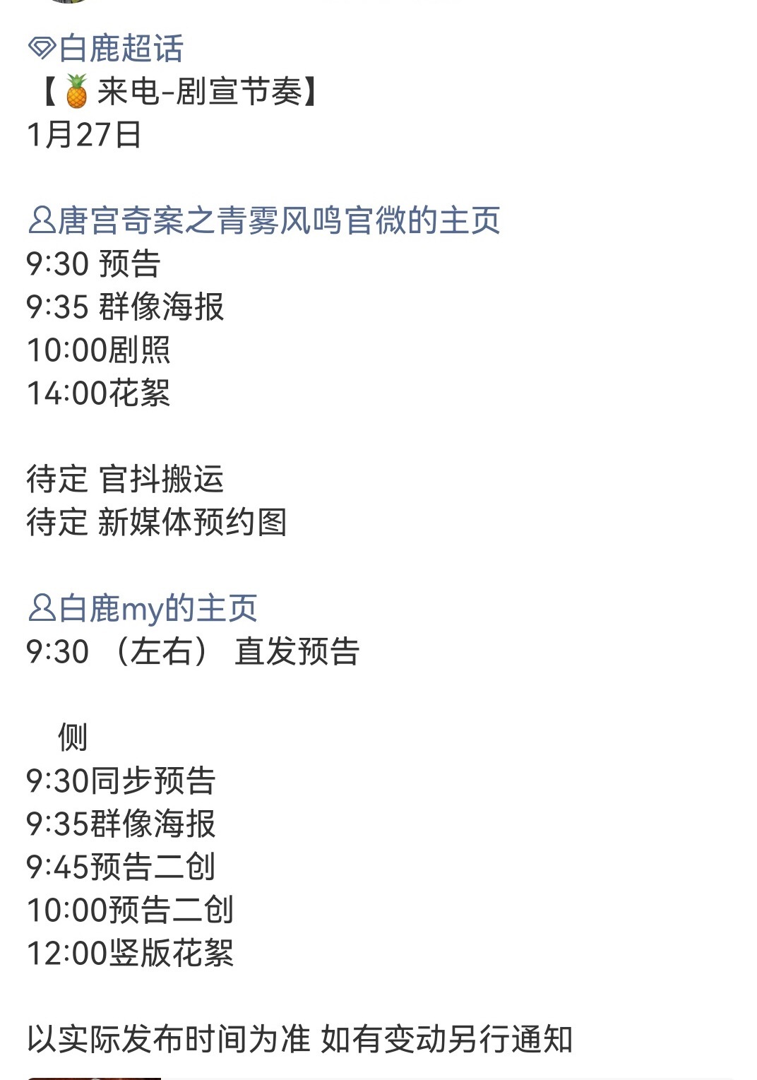 白鹿唐宫奇案了明天有新的预告!终于,终于,要开始正式剧宣了,唐宫奇案真的要来了!燥候 唐宫奇案* 2026待播剧品鉴中* 微博之夜