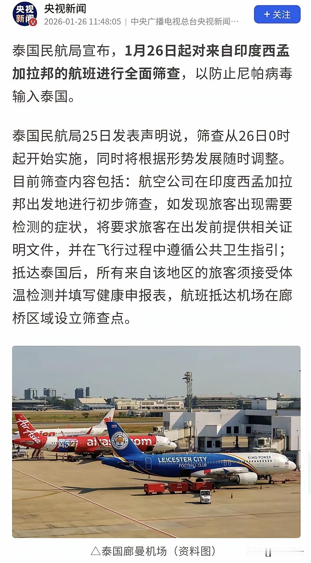 泰国已全面筛查尼帕病毒风险区航班,我国要不要跟? 最近,印度东部地区出现了尼帕病毒疫情,死亡率很高,可达75%。 澳洲,加拿大,泰国。已经开始全面筛选,防止病毒输入! 而咱们东方大国,10月1日对阿三放开K签证,到现在118天了,10万阿三来我国,潜伏期45天,希望还来得及! 对此,大家怎么看?病毒