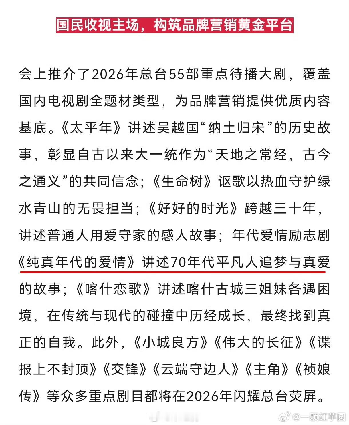 卧槽卧槽,陈飞宇纯真年代的爱情上星央八!天哪,这部太适合上星了!期待