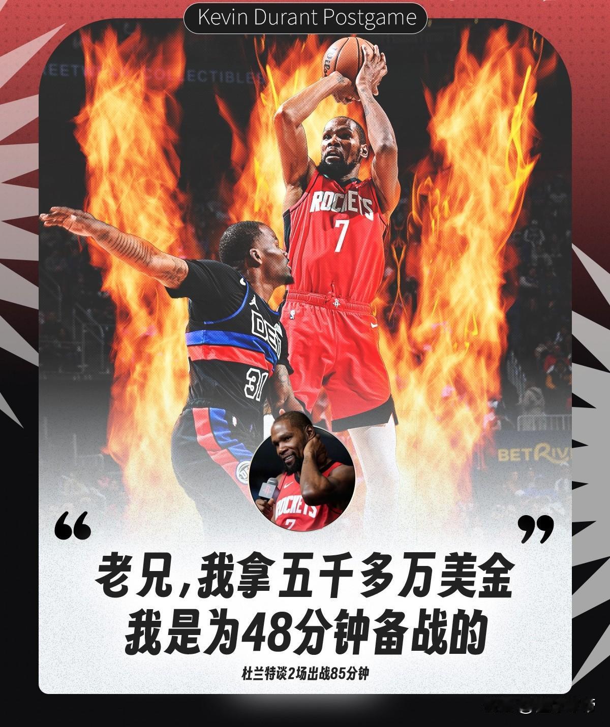 拿钱是真办事啊,杜兰特表示自己拿5000万美元年薪时刻在备战48分钟! 近日,