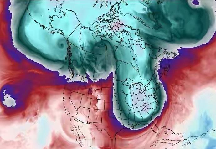 北美最近正在经历超大寒潮,美国本土被寒潮直接中出。北美大陆这个鬼地方最大的劣势就是没有东西走向的山脉阻挡北极寒潮。