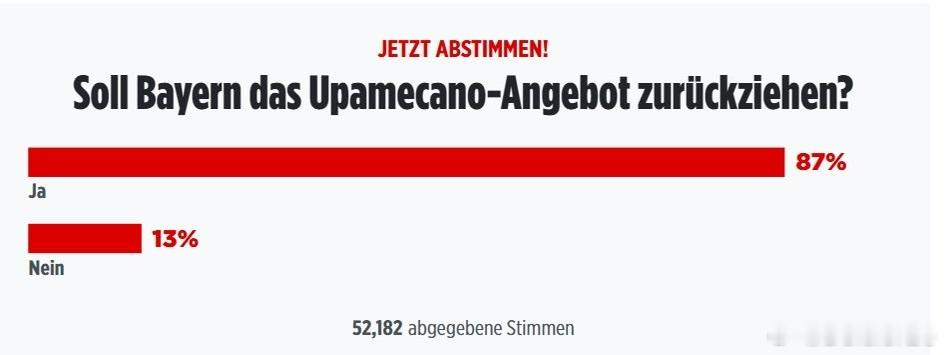 🚨🚨🚨[圖片報]民調📊 | 拜仁慕尼黑是否應該撤回對烏帕梅卡諾的報價❓❓❓❌87% 是✅13% 否共有52182人參加了投票❗🇫🇷