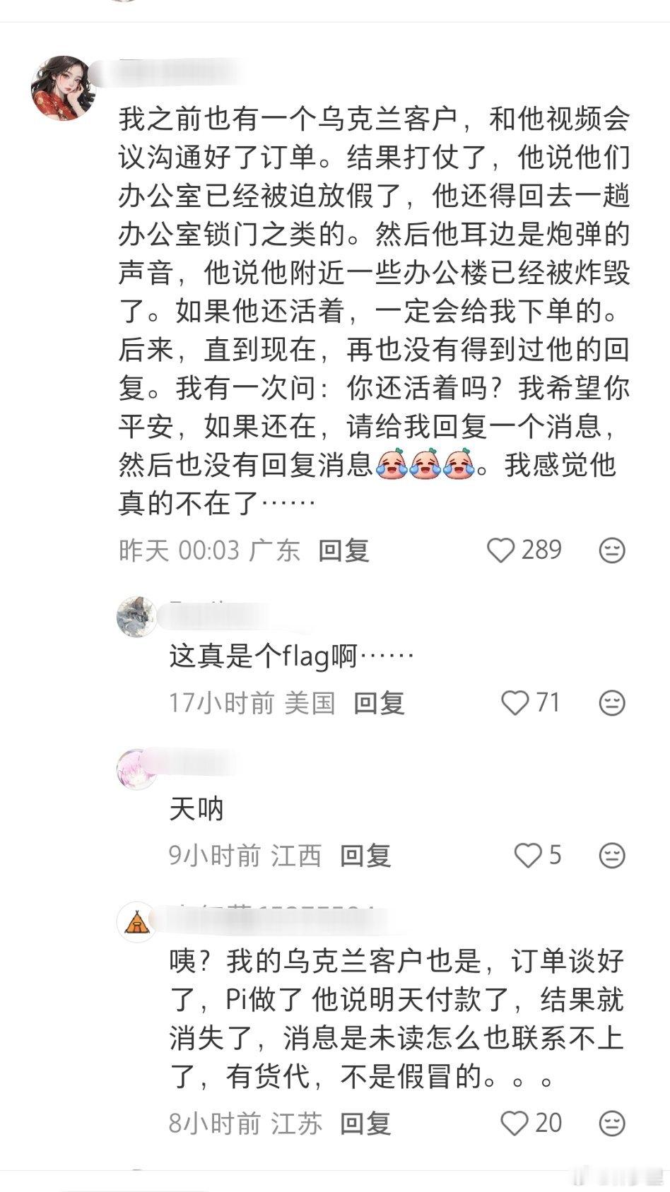 确实,现在的外贸乌克兰客户挺有风险的。下了单,人却被抓去打战了…。货做着做着,客