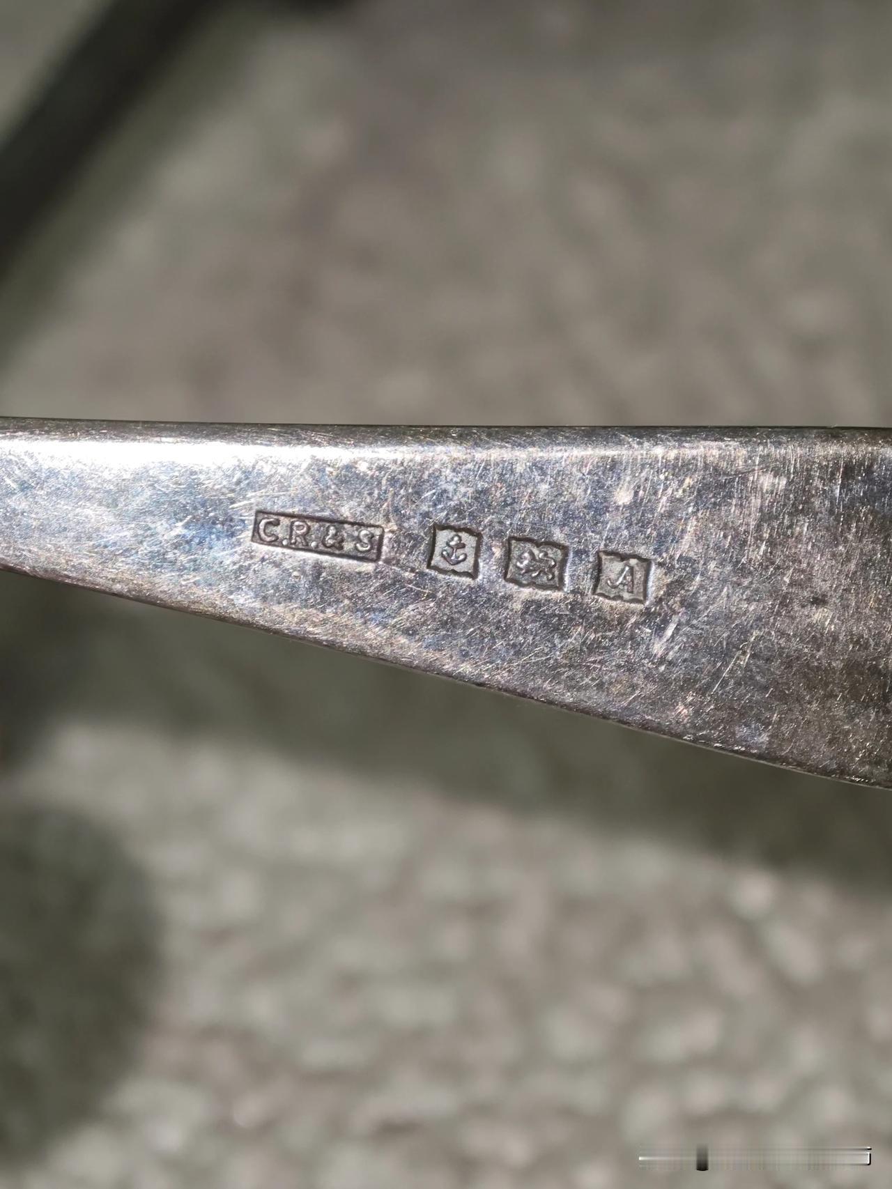 这波银价涨得也太猛了,一路狂飙根本刹不住车,手里压着的银老物件真的藏不住了!以前还想着留着收藏等升值,现在看着原料价天天涨,属实心动了。与其攥着老物件等着,不如直接融了当料出,实打实的现金到手不香吗?反正现在银价在高位,变现落袋为安,啥时候想再入银品都来得及,这波操作怎么算都不亏,果断变现才是王道!图一:英国伦敦维多利亚时期纯银戳记 顺带科普下 银完整鉴定戳记,每个印记都有明确含义: 1. 最左侧的“X”形标记:这是一个特殊的工匠或额外验证标记,用于特定时期或作坊。 2. 女王头像(左二):英国伦敦检验办公室的“责任标记”(Head Mark),代表这件银器已通过官方检验,确保银含量符合标准。 3. 狮子 passant(左三):英国纯银(925/1000)的纯度标记,这是英国银器最核心的标识。 4. 字母“L”(中间):制造日期的“日期字母”(Date Letter),代表这件银器的生产年份。 5. 豹头(左四):伦敦检验办公室的“城市标记”(Town Mark),证明银器在伦敦检验并戳记。 6. 最右侧的标记:是银器制造商的“匠师标记”(Maker's Mark),代表制作这件银器的工匠或作坊。 图二:英国谢菲尔德纯银戳记 这套戳记来自英国谢菲尔德检验办公室,同样是完整的纯银认证体系: 1. “CR & S”:这是制造商的匠师标记,代表“C. R. & Sons”或类似的作坊名称。 2. 锚形标记(左一):谢菲尔德检验办公室的“城市标记”,是谢菲尔德银器的专属标识。 3. 狮子 passant(中间):英国纯银(925/1000)的纯度标记。 4. 字母“A”(右一):制造日期的“日期字母”,代表具体生产年份,不同时期的字母表会略有不同。 英国银器戳记核心逻辑 英国从13世纪开始就建立了这套严格的戳记体系,目的是保护消费者不买到劣质银器。一套完整的戳记通常包含: - 责任标记(女王/国王头像):官方背书 - 纯度标记(狮子 passant):代表925纯银 - 城市标记(豹头/锚等):代表检验城市 - 日期字母(A-Z循环):代表生产年份 - 匠师标记:代表制造商