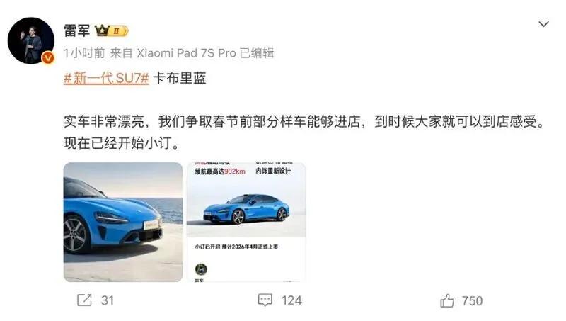 这是什么心理?小米新SU7价格不降反涨太火,小定半月狂揽近10万单! 小米新一代SU7彻底点燃市场!1月7日开启小定后,短短半个月订单量逼近10万单,即便预售价较现款涨1-1.4万,依旧挡不住消费者热情,北京单店订单破400、上海武汉门店均超百单,热度拉满。 新车产品力全面升级是核心底气,全系标配激光雷达,Pro版续航突破900Km,897V高压平台实现15分钟补能670Km,还优化了智驾硬件、换装新电机、调校悬架,新增的卡布里蓝配色更是成爆款选择。 小米还提前锁定核心零部件库存,预计交付周期不会复刻YU7的久等,4月正式上市后,这波订单量有望让新SU7再度复刻初代爆款神话!