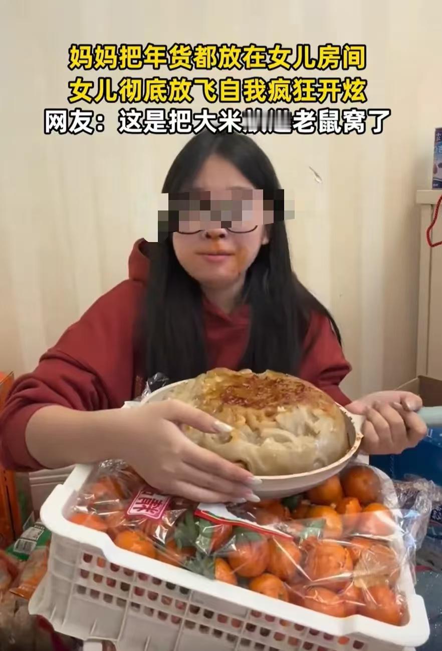 “她不会觉得自己很可爱吧?”四川,一女生放假回家,发现妈妈把提前准备好的年货都放在自己的屋里,结果关上门彻底放飞自我当场开炫,等妈妈进屋发现时,年货已经被女儿拆的七七八八了,网友:你可以吃,但不能嚯嚯霍! 从女生晒出的视频能看到,妈妈的准备有多用心。薯片成箱堆着,砂糖橘垒得整整齐齐,草莓装了好几盒,连自制的猪皮冻都盛了满满一大盆,整个房间活脱脱一个零食仓库。 她关上门就没了顾忌,猪皮冻整盆扣出来浇上酱油抱着啃,牛奶不拆单盒非要整排一起嘬,草莓掰成两半尝一口就放一边。每样年货都拆开了,真正吃完的没几样,屋里很快变得狼藉一片。 妈妈推门进来的瞬间,脸色当场变了。精心筹备半天的年货被嚯嚯得不成样子,吃没吃多少,浪费得倒不少。女生还觉得妈妈的反应有趣,顺手把视频发到了网上。 网友的评论一边倒,有人直言“想吃就好好吃,为了拍视频糟蹋东西真没必要”,也有人吐槽“这不是可爱是没分寸,父母的心意不是道具”。确实,这样的“放飞”实在让人难以认同。 年货从来不是单纯的食物,是妈妈早早就开始忙碌的心血,是一家人团圆时分享的喜悦。四川人家备年货本就讲究实在,炸酥肉、蒸枣糕、做腊味,每一样都藏着对儿女的牵挂。 记录生活没问题,但不能以浪费为代价。流量再诱人,也抵不过父母的用心。回家过年图的是团聚舒心,不是博眼球的表演。 想吃年货可以跟妈妈说,分享着吃才叫年味。别让镜头挡住了真情,别让一时的任性寒了父母的心。 各位读者你们怎么看?欢迎在评论区讨论。