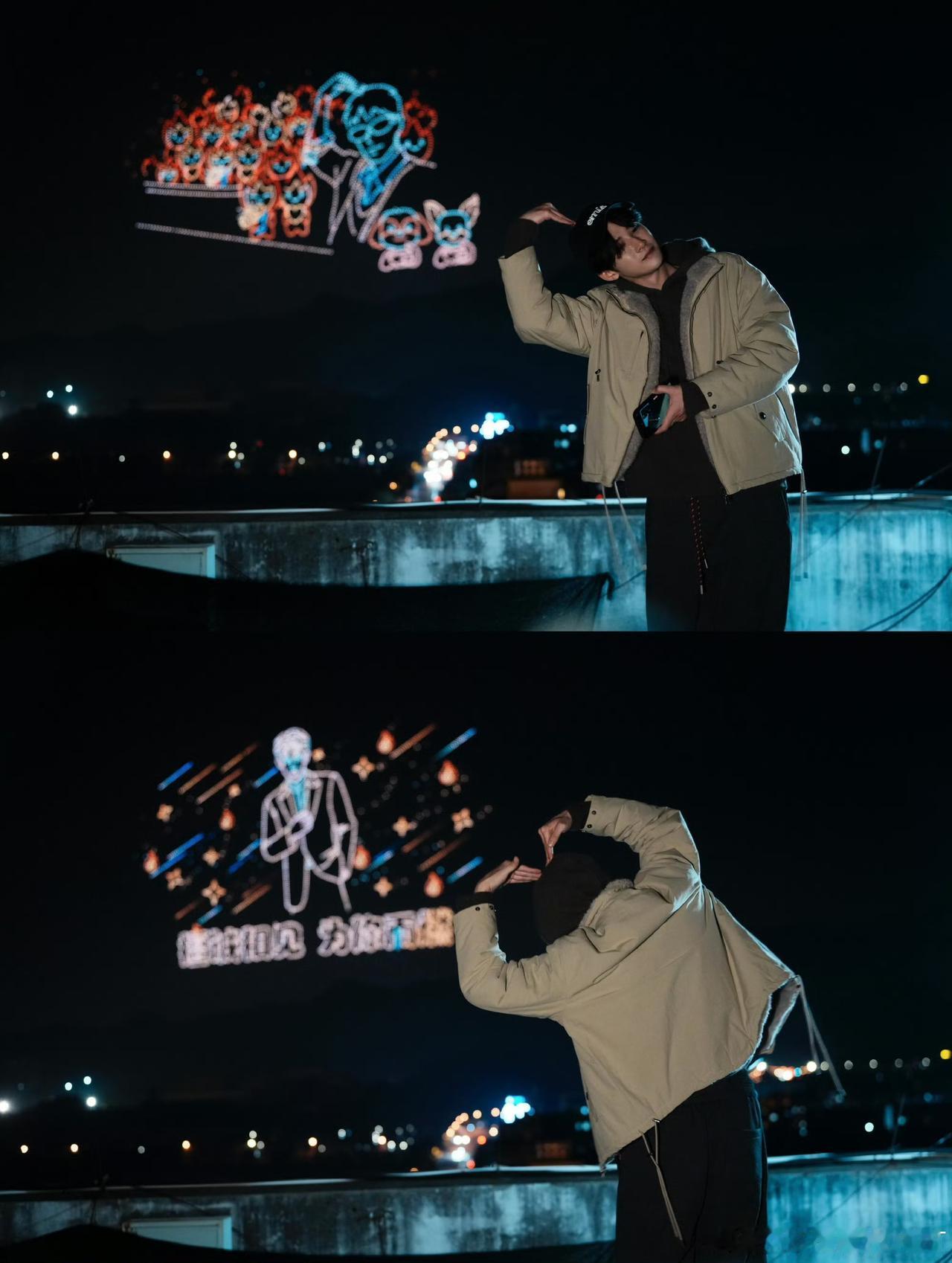 所以24日好晚上无人机有人拍到的在城墙上真的是檀健次呀,当时很多人都说他在车里看的,这不大漏勺发图了!至此,全家福已达成 ​​​! 我永远记得《震耳欲聋》路演时他说的那段话:我不知道该怎么做才能告诉你们 你们对我很重要” 所以大哥把他能想到的真的都做了! 开机当天光是在花墙那就站了40分钟,那么长的队伍从头跑到尾从尾回到头来来回回跑遍每个角落让所有粉丝能看到自己。陪粉丝聊了那么久的天比别人一次见面会都长,还和粉丝一起跳舞,讲自己的故事,嘱咐粉丝注意安全注意保暖。 每一片都有合影,怕炭火冷到了感冒了,还提前准备了3200份热饮,还保密给我们惊喜!这么多杯到手还必须保证是热乎的,看到有这么多人之后还说不知道够不够,健次健次你真的特别好! 因为想让每一个方位的粉丝都看见自己,所以来来回回在应援区走了好几遍,和每一个方位的粉丝合影,跟着跑的横店的摄影工作人员都喘了! 檀健次还在继续跑,自身眼睛畏强光、烈日下难睁双眼,但他想让我们也看到他的眼睛所以摘下了墨镜!他会亲自举起手机,认真记录下粉丝每一颗真心的珍视! 一个老生常谈的问题檀健次到底是什么人呢?为什么风暴过后大家反而更喜欢他了呢? 是无论何时何地,总把粉丝的温饱惦念在心头的细腻;是欣喜于粉丝筹备的应援,却满心叨叨心疼粉丝破费的惦惜;是合影时方方面面照顾到所有粉丝的细心;和无人机合影还开了双摄记录这一刻,每一幕都在诉说着他对大家的爱意! 会告诉粉丝自己会去看粉丝准备的无人机表演,默默的站在楼顶上看完了全程并拍照留念,然后还不忘进直播间连发十几条向线上线下所有粉丝表达自己的关心和爱意。 是无惧世间流言、无畏前路困境,却会被炭火的一腔真情戳中落泪的柔软;是始终以优质作品,认真回馈粉丝所有支持的用心! 檀健次给到我们的情绪价值,远远比我们想要给他的更多更多更多。 这样的檀健次,让人没有办法不去好好宠爱,他藏着世间最纯粹的温柔,带着最坚定的热爱与赤诚,配得上所有的偏爱与奔赴,值得炭火岁岁年年的守护!