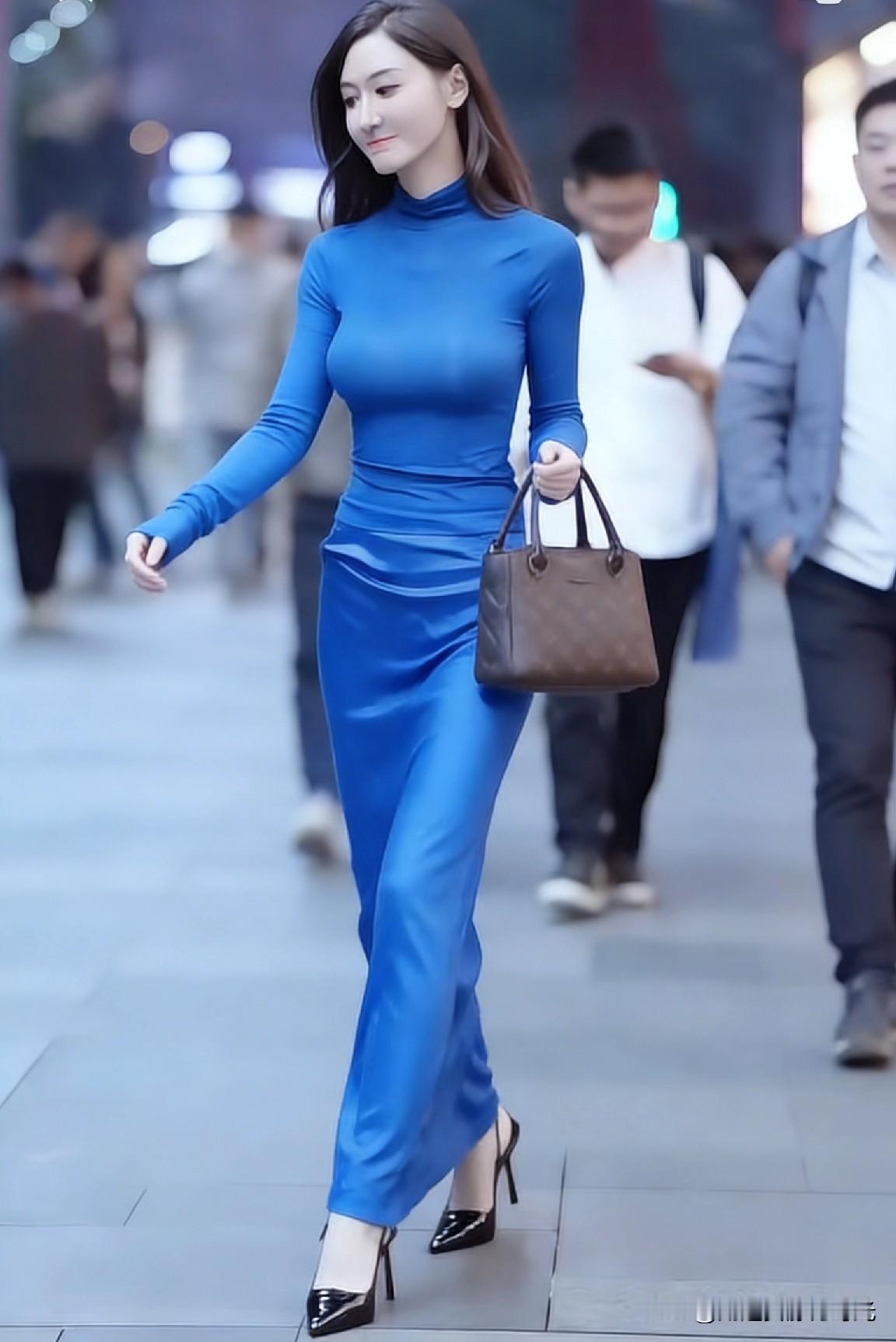都市时尚风,蓝色长袖连衣裙,优雅自信,走在潮流前沿!