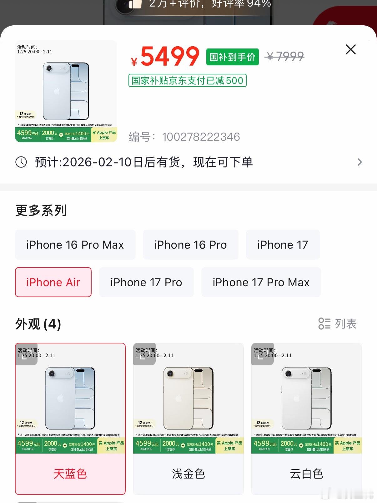 朋友买了台iPhoneAir,已经缺货到2月10号才能发货了,要理智啊朋友们,