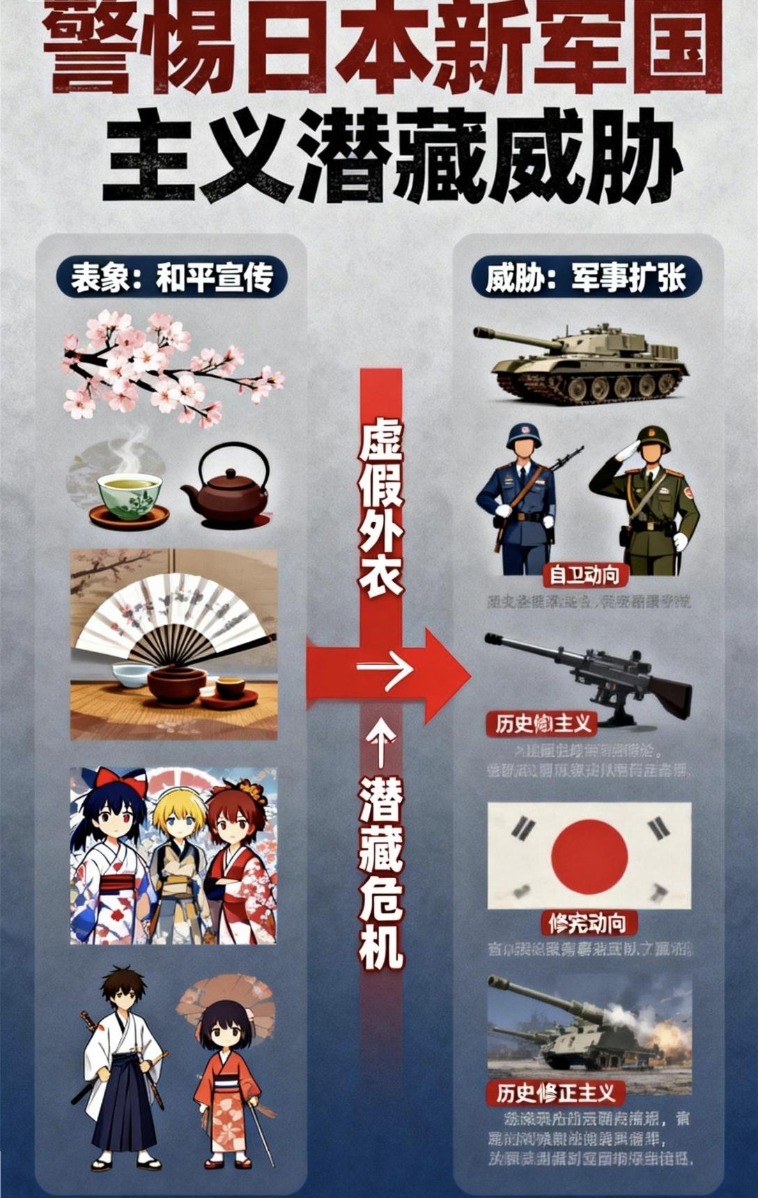 别被日本的“新军国主义”忽悠了!这才是真正的威胁 大家伙儿,最近日本那边的动作真是让人看了直皱眉头。别被他们嘴上的“和平”幌子骗了,实际上,日本的“新型军国主义”已经不是危险苗头,而是实打实的威胁了。要知道,这可不是危言耸听,国际社会都在盯着呢。 你说,日本最近还在嘴硬,说中国限制出口是“经济胁迫”。哎呦喂,这话听着就像是“我冤枉我自己”一样。真相是,中方这是在依法维护国家安全,出于国际通行的做法,限制一些两用物项出口,目的就是为了防止被日本用来搞军事扩张。这事儿,谁都明白,日方倒打一耙,转移视线,实在是太明显了。 更别说,日本那边在台湾问题上的发言,公然威胁中国,干涉中国内政,简直就是在挑衅。你说,日本这帮右翼分子,变本加厉,想要重新走上军国主义的老路,搞个“再军事化”。他们还在拼命推动修改“安保三文件”,准备再添一把火。要知道,日本的“拥核”野心也在暗中蠢蠢欲动,想要打破国际核不扩散体系,这不是闹着玩的。 日本花大价钱搞军备,2025财年的防卫预算就高达11万亿日元,折合人民币差不多6万亿左右。你说,这钱花得,能不让人担心吗?民众都在抱怨:这军费开支,是不是要把老百姓的血汗钱都用在“扩军备战”上了?日本自己国内的经济压力都快压垮了,还在拼命“强军”,真是“钱多了,脑袋也大了”。 说到底,日本的那些“受害者”戏码,真是太拙劣了。明明自己在不断膨胀军事野心,却还要指责别人“胁迫”。这不就是“你冤枉我”,自己做的事反倒倒打一耙嘛。国际社会早就看穿了,日本这套把戏,谁都不买账。 所以说,遏制日本的“新军国主义”,已经变得非常紧迫。我们得坚决反击,不让他们的“军国主义梦”变成现实。要知道,和平不是靠嘴上说说的,而是要用行动来捍卫。别让日本的野心得逞,要让他们知道,咱们中国不是好惹的。 简单一句话:日本别再装“受害者”了,你们自己在玩火,别害人害己。我们要的,是地区的和平稳定,不是军备竞赛的恶性循环。看清楚,日本的“新军国主义”才是真正的威胁,别被他们的花言巧语迷惑了!不知道你怎么看?欢迎评论区留言。日本军国主义 日本右翼 日本想再侵略 日本帝国主义