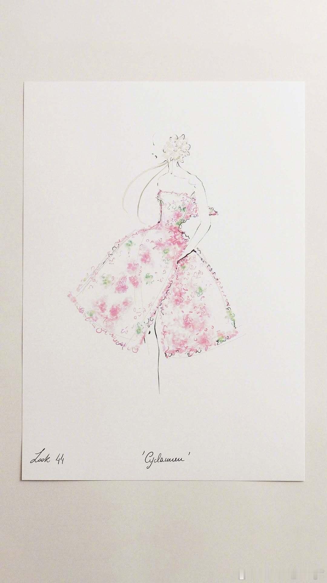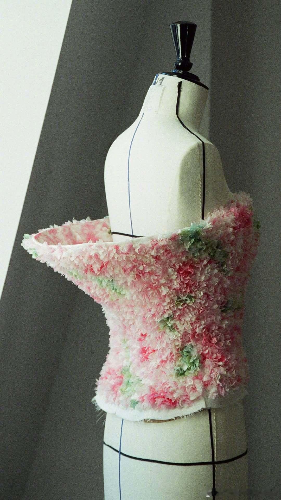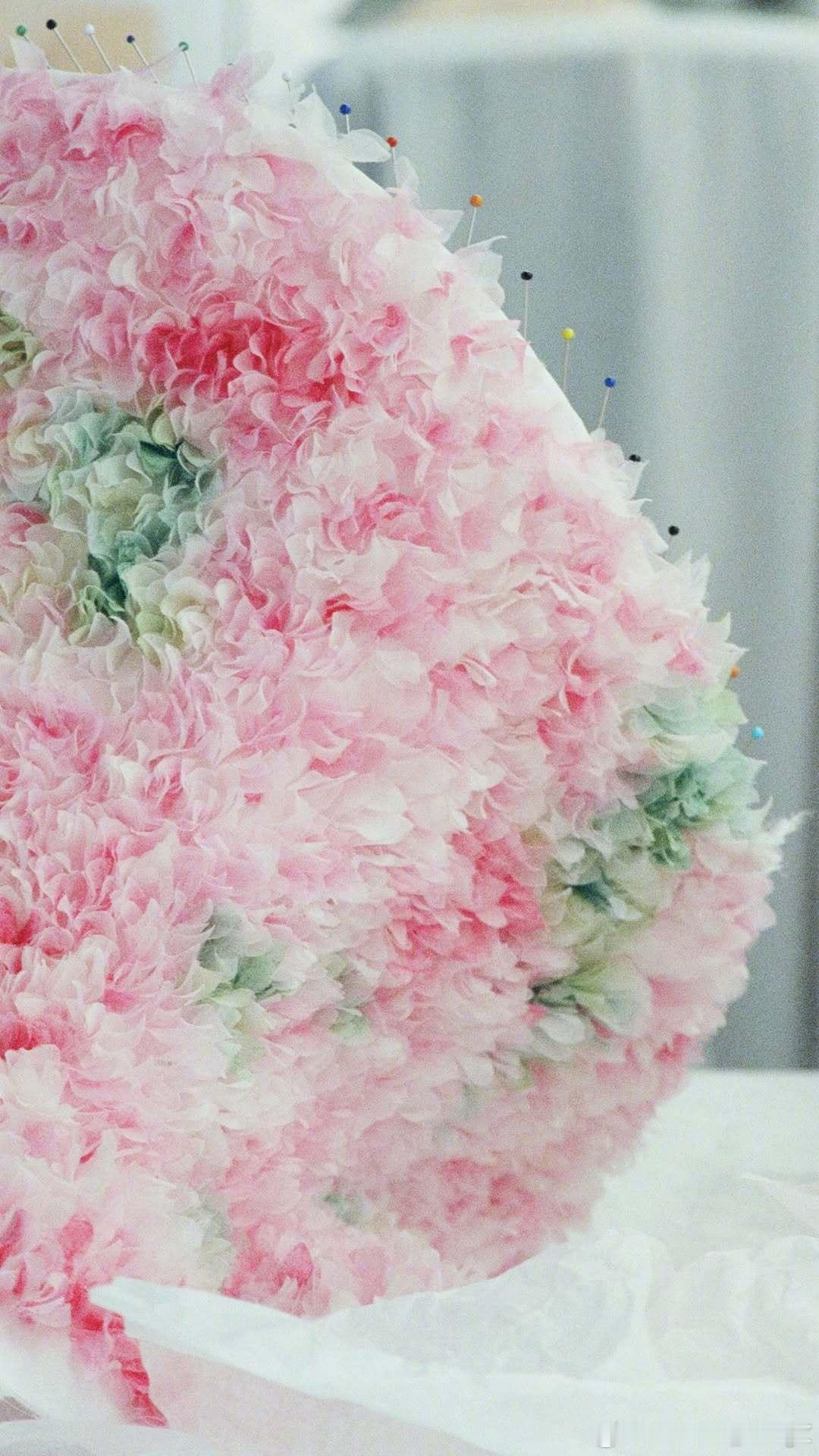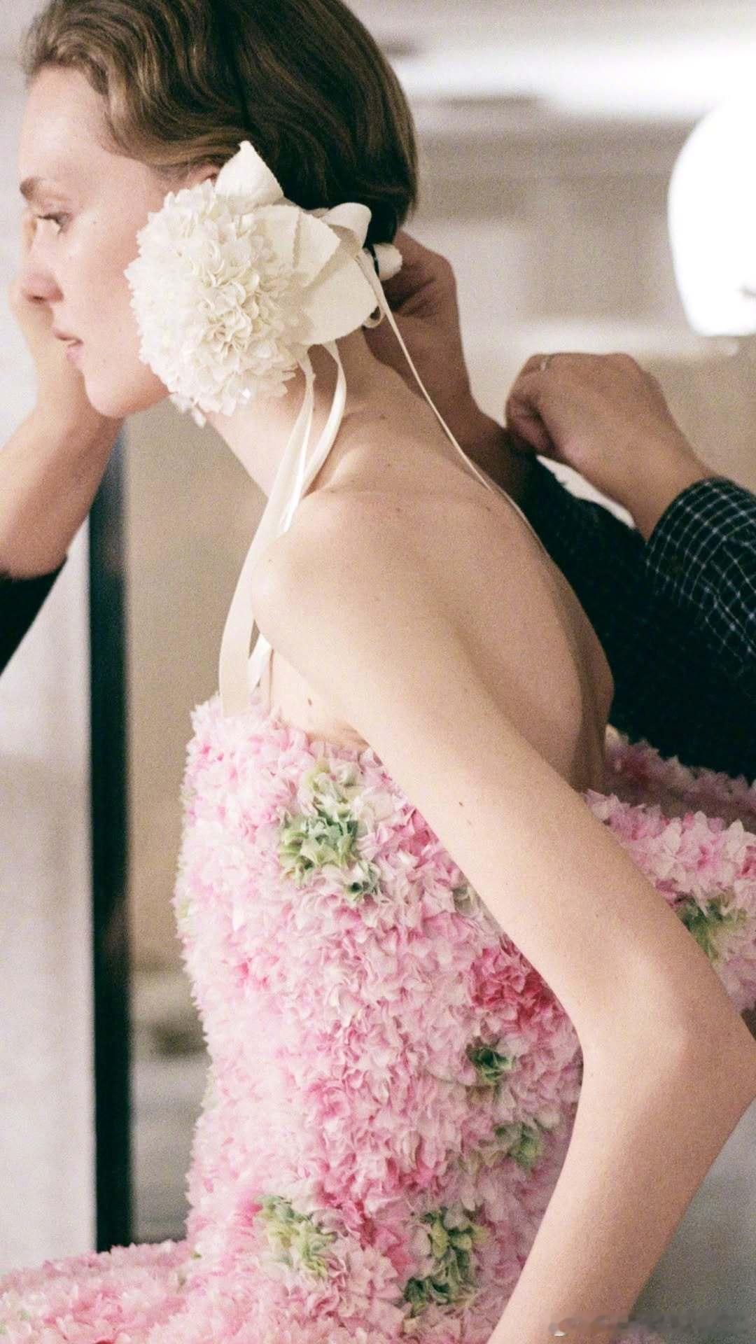 Dior Haute Couture S/S 2026 | Look 44 | 昨天发布的 Dior 2026春夏高定系列,第44套造型。名为「Cyclamen」,灵感采撷自仙客来花束。缀满全身,繁盛而梦幻。耳饰采用织物雕花工艺打造,灵动摇曳Dior大秀 🤍 巴黎高定时装周