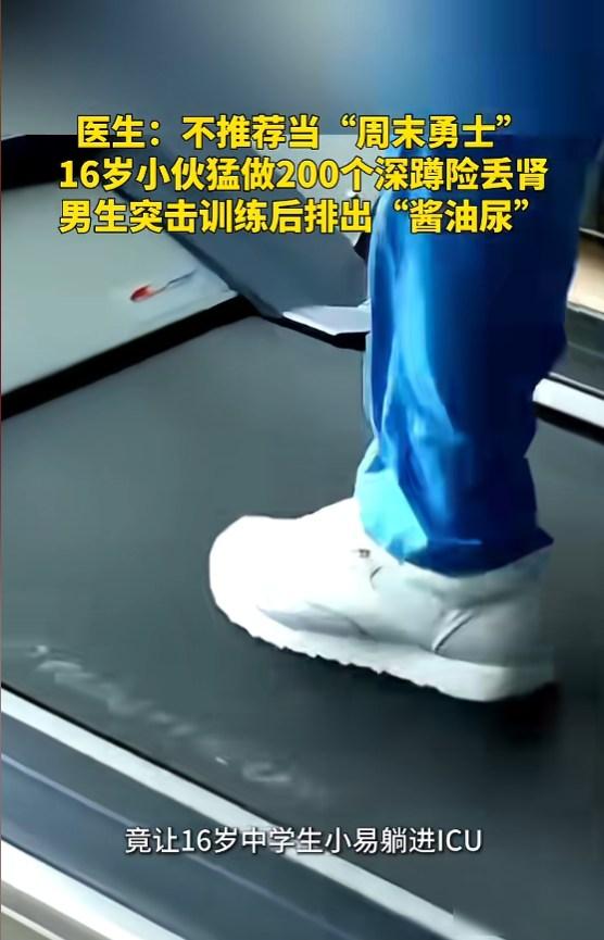 “悲剧还是发生了!”近日,湖南,一男生为了强身健体,在没有热身的基础下,竟直接猛做200个深蹲,结果严重超出身体负荷,做完后双腿就没办法站立,甚至尿液成了酱油色,送医后,才知道是突发横纹肌溶解症,导致急性肾损伤,差点危及生命! 我看到这新闻时心里直犯嘀咕,现在年轻人总想赶紧练出肌肉,却一点都不在乎会不会伤身,小易平时几乎不动,一听深蹲能练腿,就想着多做几组赶紧见效,连热身都不做,硬撑着一口气做完两百个,这种做法跟拿命赌没区别,肌肉一崩,肌红蛋白就往血里跑,肾脏哪受得了这个。 医生说再晚一点送医就得洗肾,甚至可能没命,小易一听就愣住了,谁能想到健身能把自己练进ICU,现在好多健身房教练都跟新手说快速见效的法子,可他们真知道普通人身体底子薄吗。 我身边有朋友图省事,买个健身APP跟着练,结果拉伤韧带,扭伤肌肉的不少,运动这事儿真不能乱来,就像骑摩托车得先懂规矩一样,锻炼身体也得一步步来,特别是深蹲,新手先练好标准动作,再慢慢加重量才行。 小易还躺在医院里,天天盯着吊瓶发愣,他现在最想说的大概是,早知道这样,还不如每天安安稳稳跑个步,运动本来就是为了健康,可人要是没了,再健康的日子也享不上。