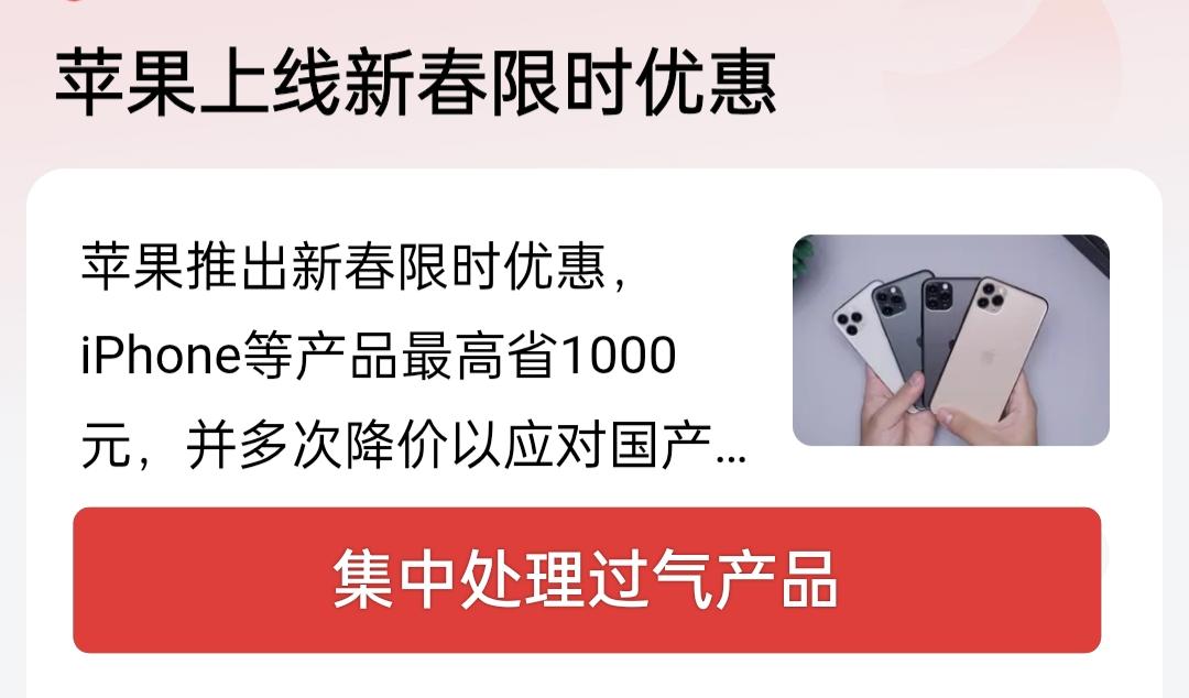 苹果又打响了价格战,技术不够,价格来凑,苹果的影响力越来越小了,再不赶紧清清库存,以后更出不了手! 国产手机现在无论软件还是硬件,都遥遥领先,苹果已跌下神坛, 昔日高端王者的光环已彻底黯淡,好日子一去不复返了! 苹果若再不放下身段搞研发、补短板,别说清库存,怕是连高端市场的地位都要保不住,跌下神坛只是必然结果,属于苹果的时代,真的要翻篇了!